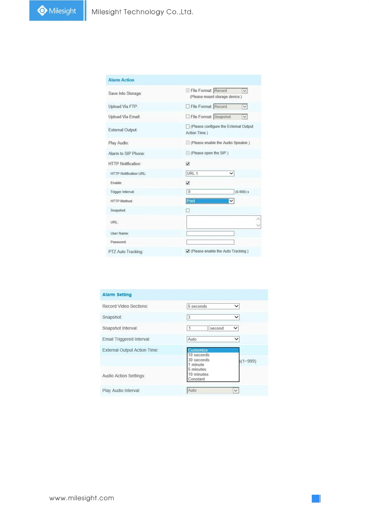 Step8: Set alarm settings. If you enable External Output and choose Constant External Output