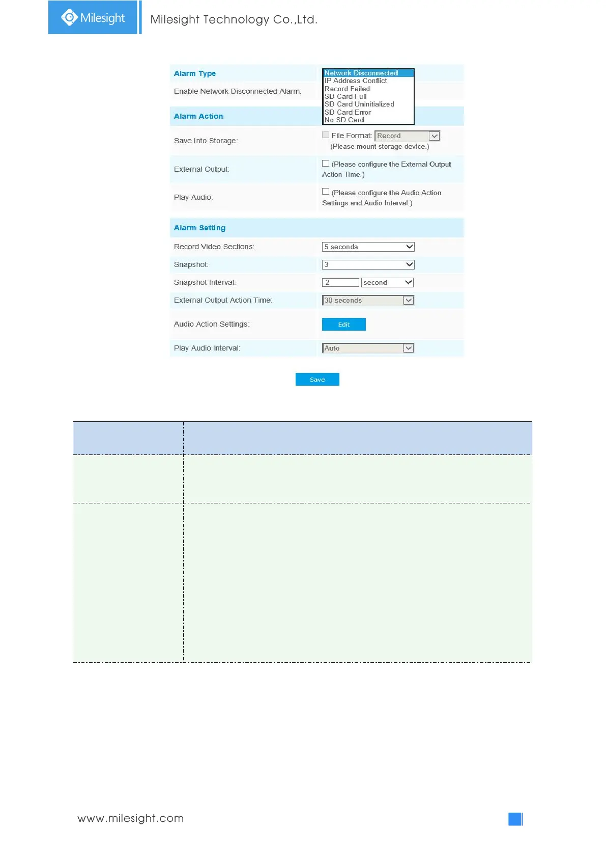 Play Audio: If the camera equips with Speaker, you can enable the action after