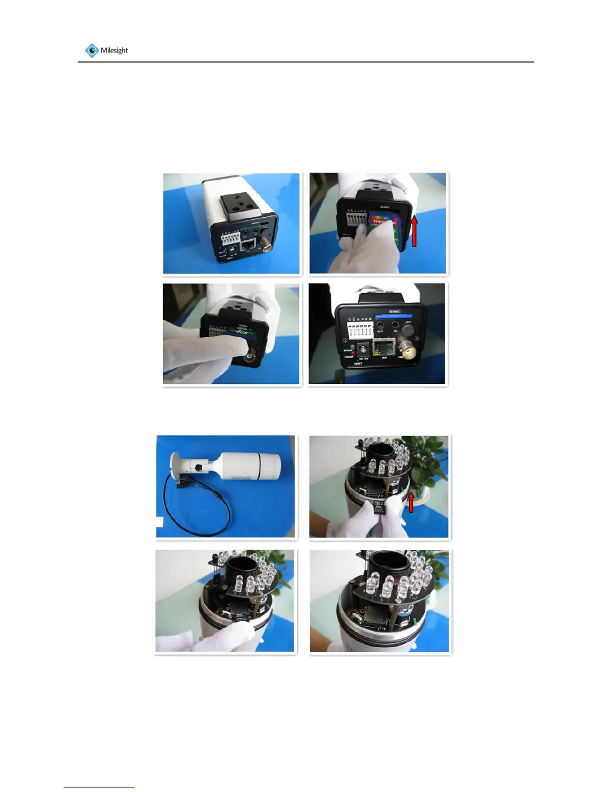 2. Insert the SD card into the slot with the metal contacts facing down.