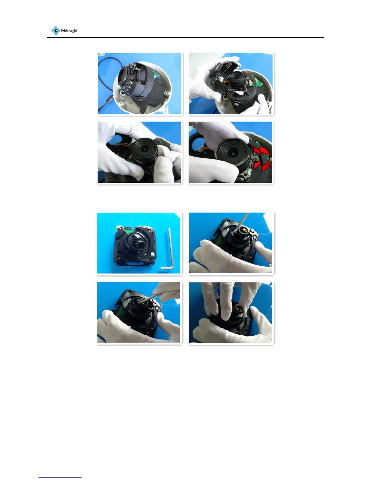 Note: The user could adjust the lens angle either using the L-type hex key or manually (see as step 4).