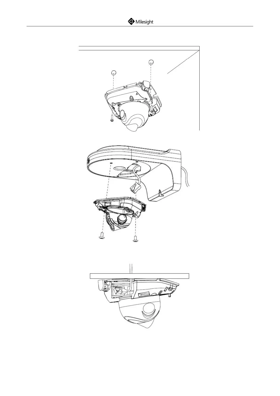 Step2: Secure the screws to wall or bracket, please notice to get the cable through the bracket