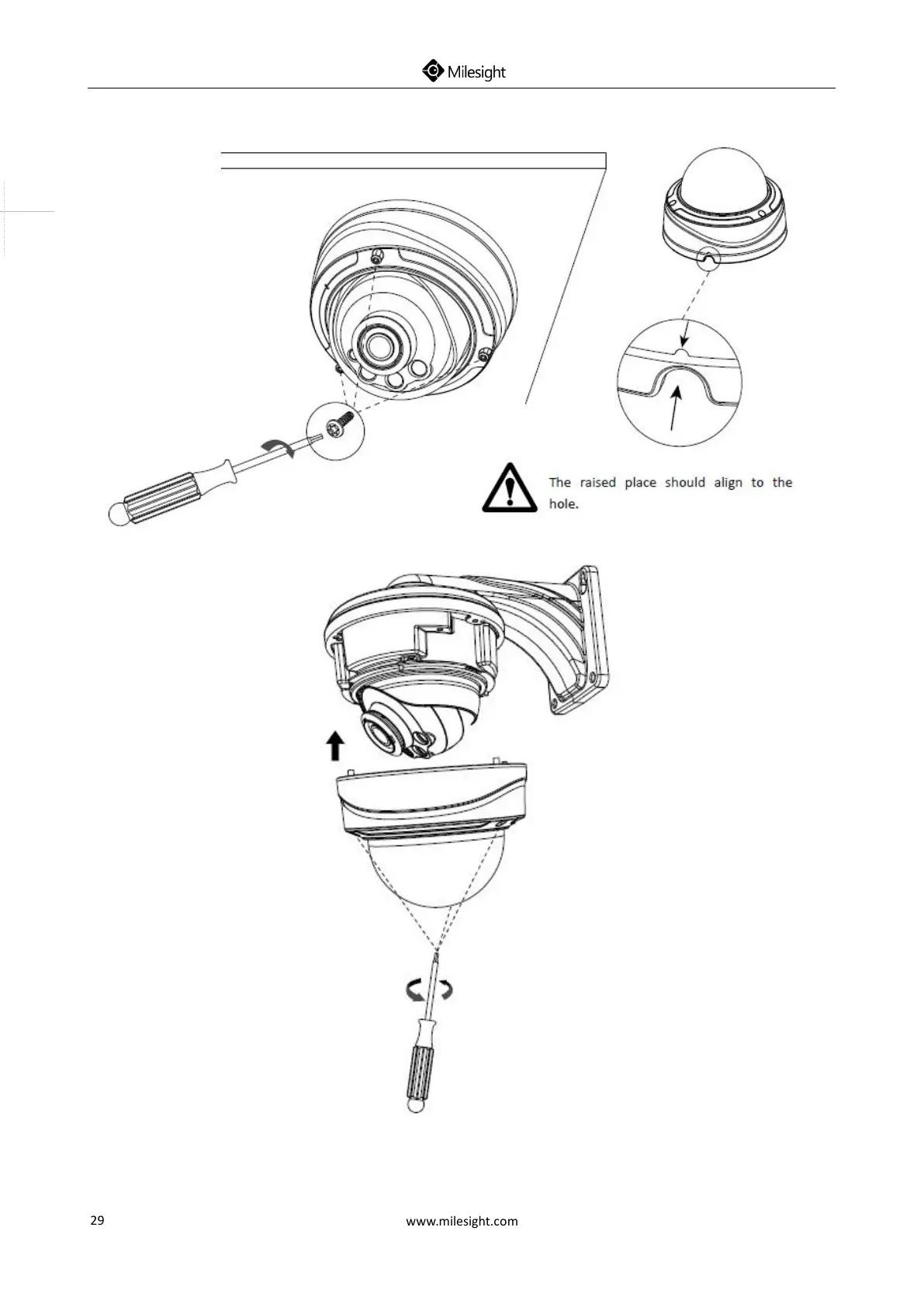 Step6: Attach the dome cover and please place the raised position to align to the hole as the