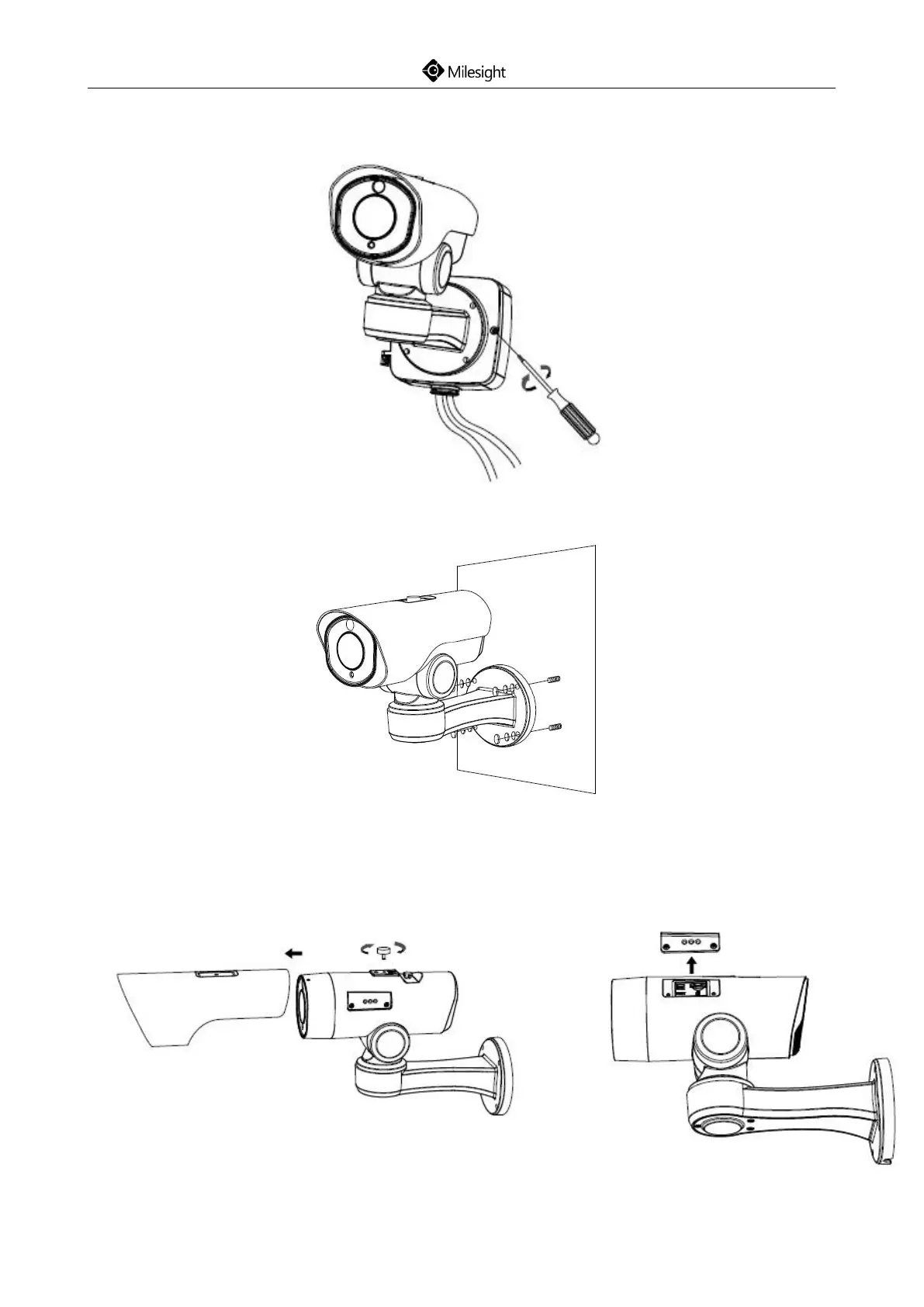 Step4: Install and tighten the rear cover and fasten the bracket to the camera using 4 plum flower