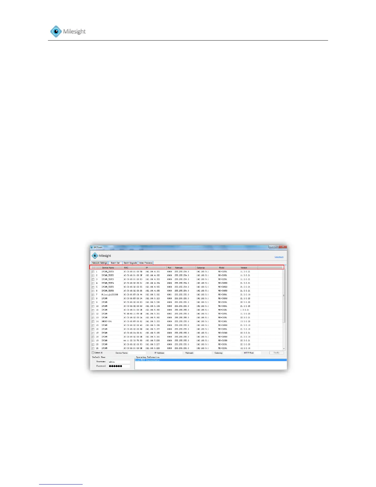 Netmask, and Gateway of all Milesight network cameras will be displayed. Details are