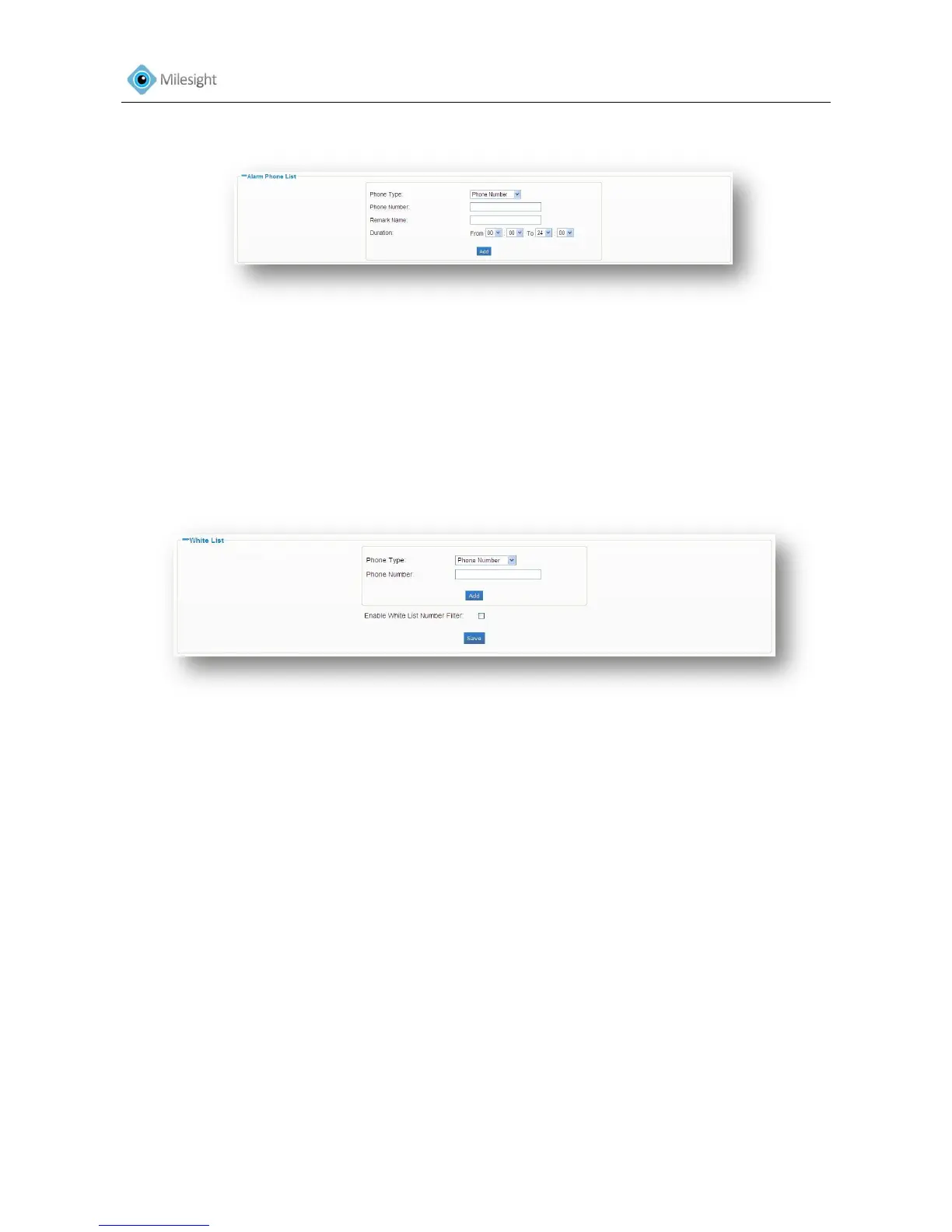 Enable White List Number Filter When enabled, only the designated phone number or IP