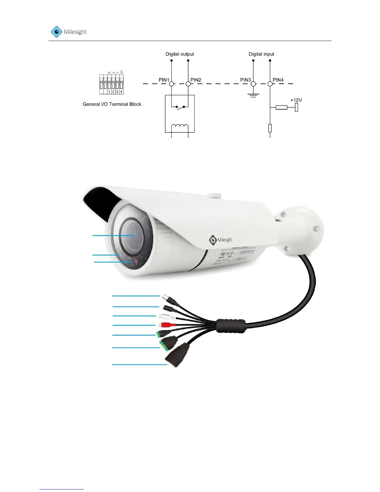 1) The network camera provides a general I/O terminal block which is used to connect external