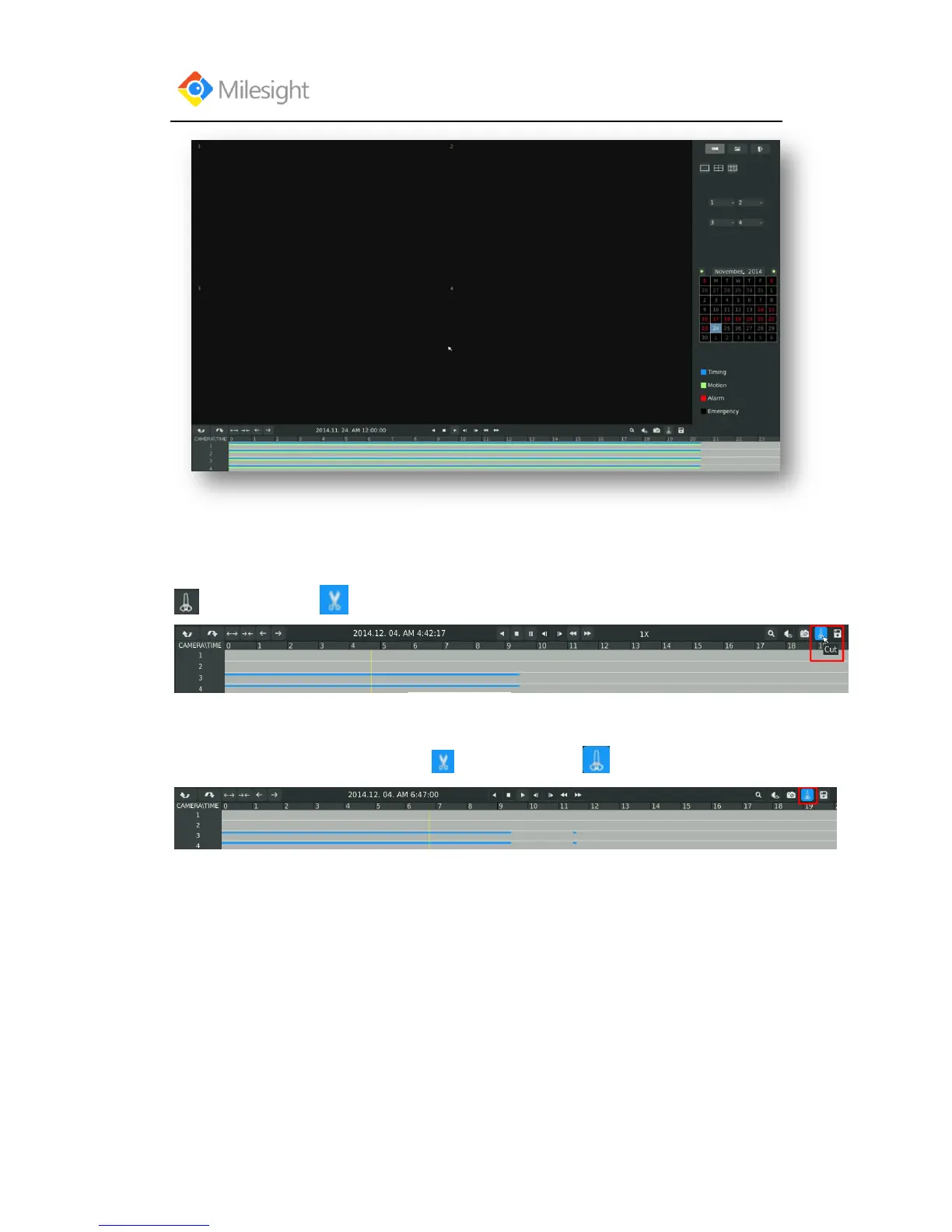 Select the end time at time line and click , it will change into ,which means cut ends.