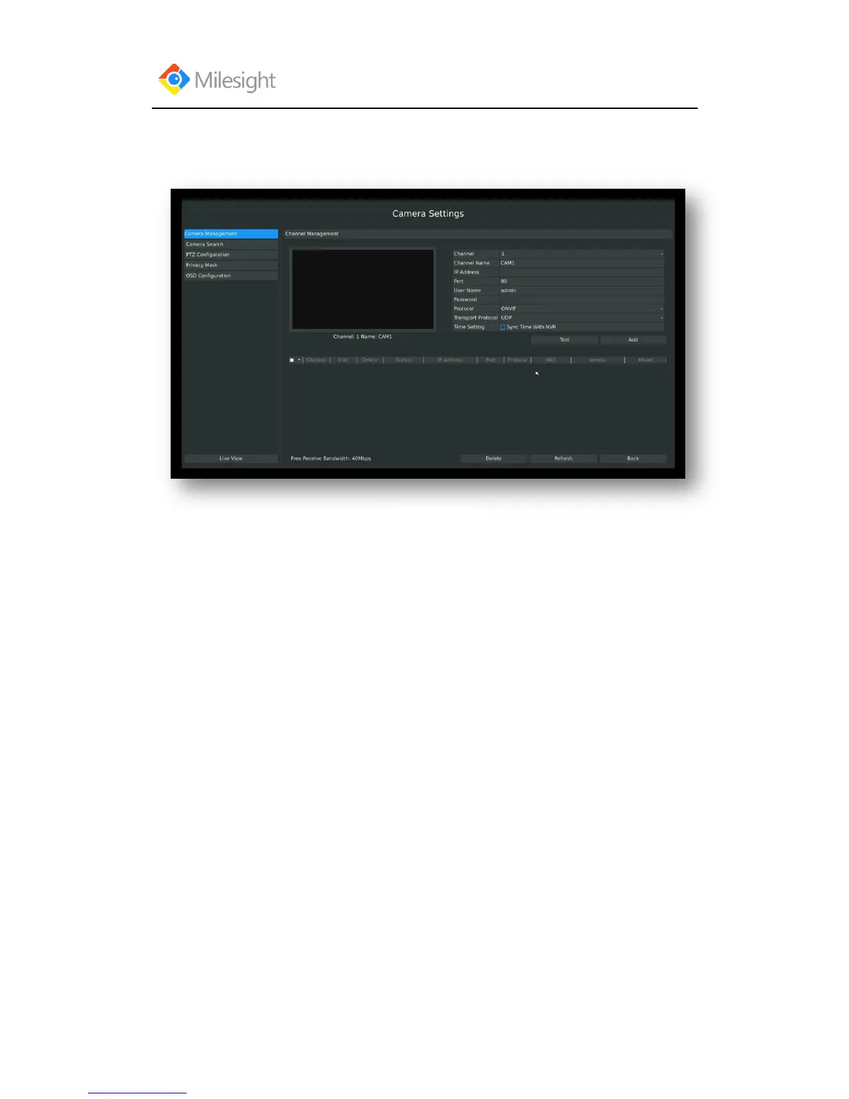 Method2. Add IP Channel in camera management interface