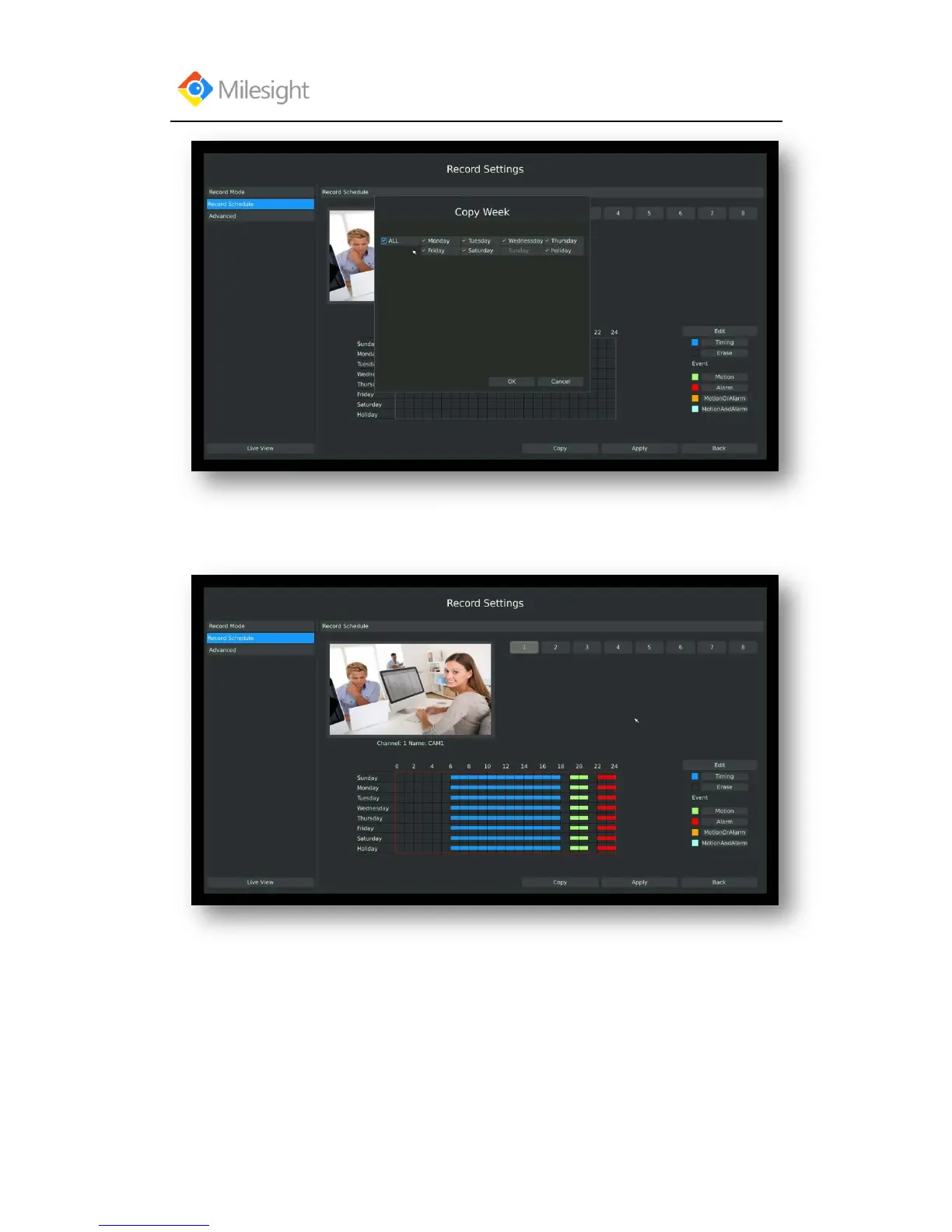 Step6.Copy the recording settings to other channels