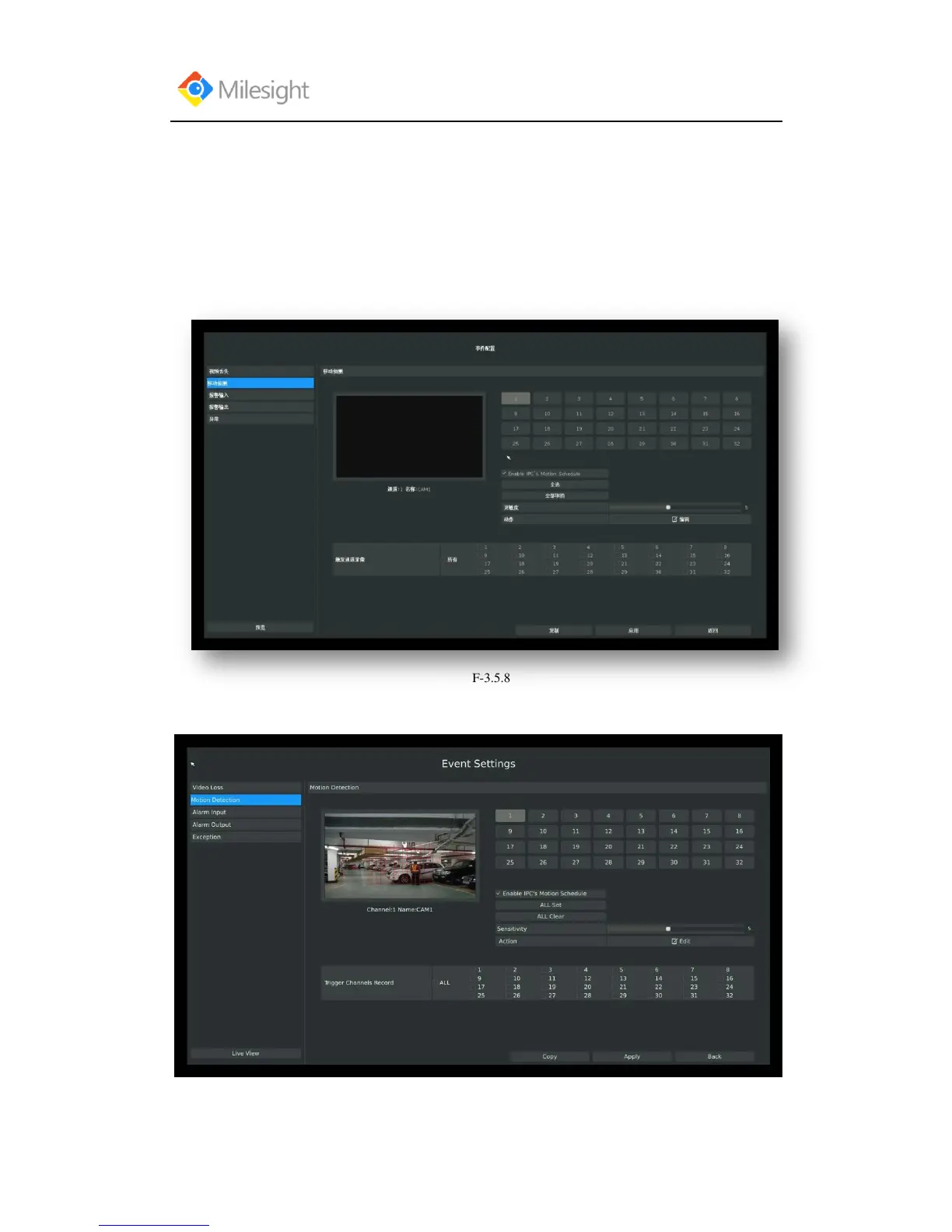 Step1.Enter motion detection setting interface by clicking Main Menu→Event→Motion