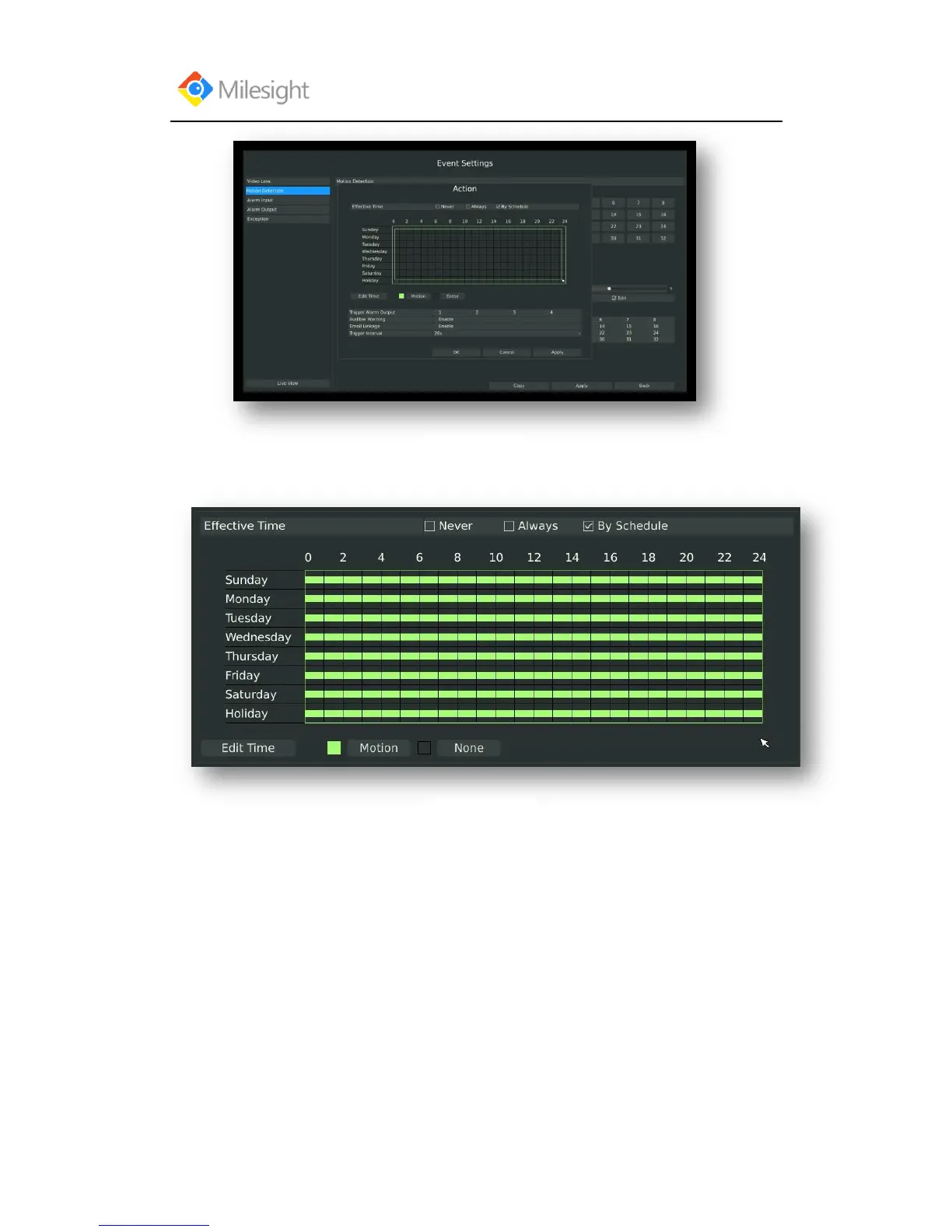 with up to 12 time periods per day. Motion detection actions take effect in the scheduled period