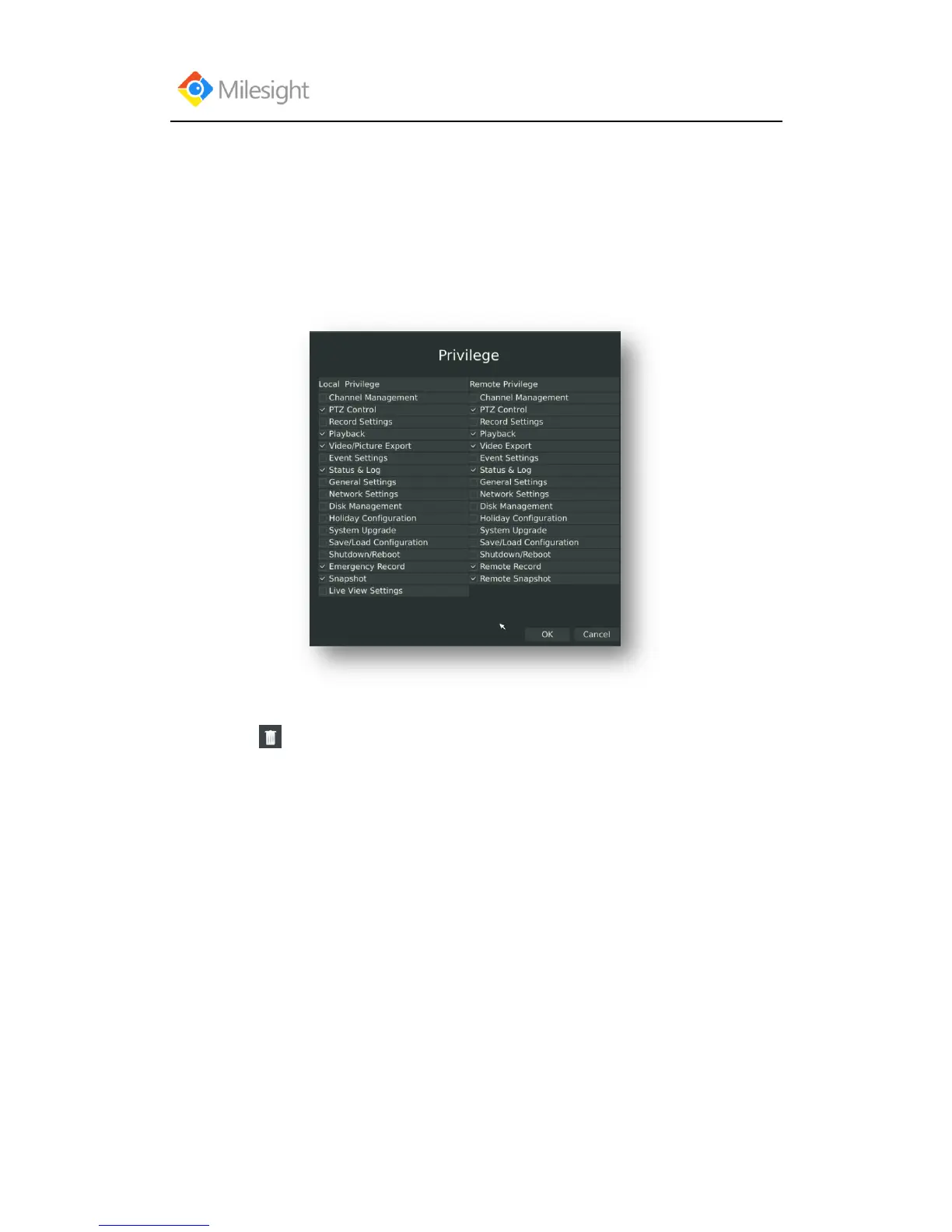 Select the user that has been added and click [limit] button to enter user privilege menu.