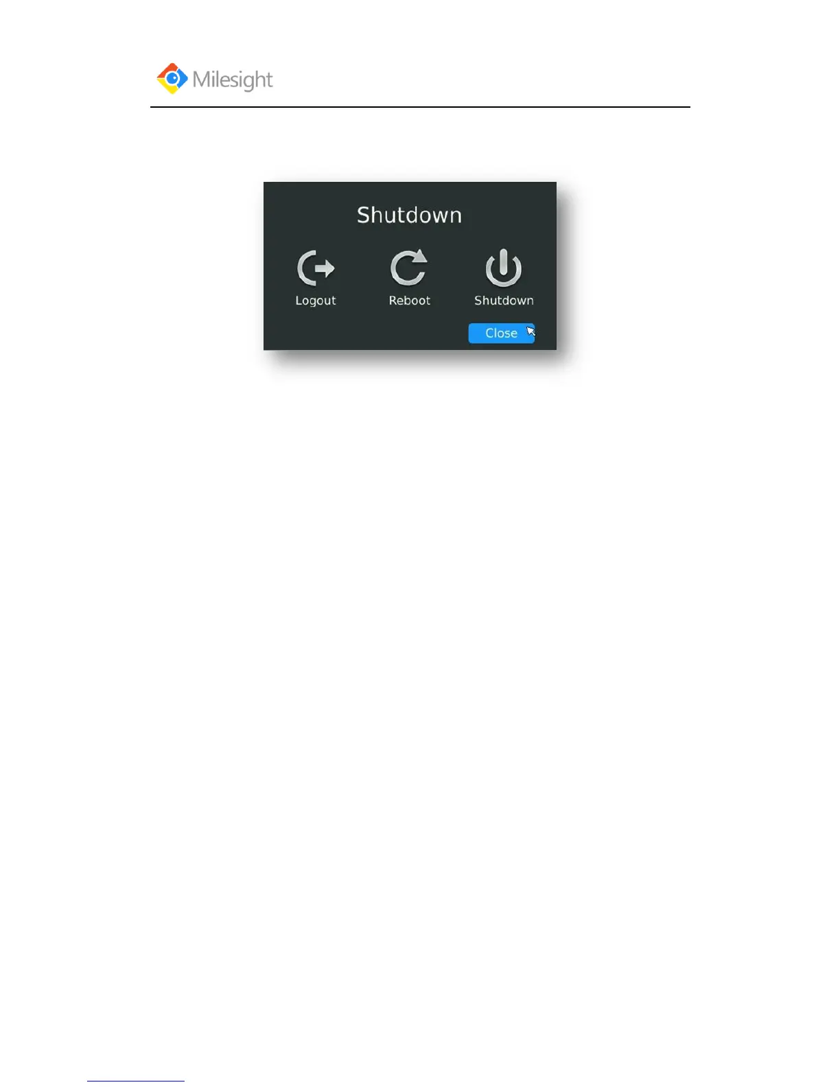Milesight NVR - 3.9 Shutdown; 3.9.1 Logout; 3.9.2 Reboot; 3.9.3 Shutdown