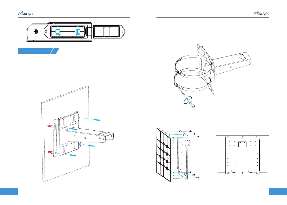 1. Fix the solar panel to the solar panel bracket using 6 fixing screws.
