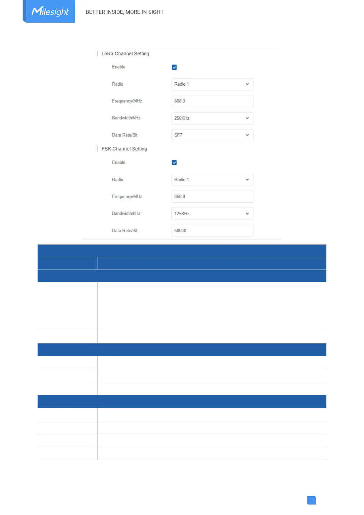 and datarates. Available options depend on the gateway’s model: