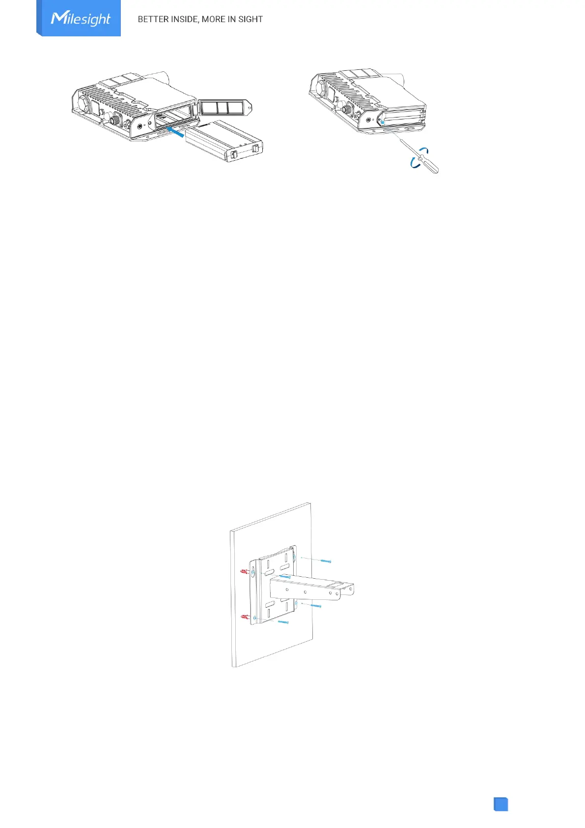 holes. Then fix the mounting bracket to the wall by fixing the wall mounting screws into the wall