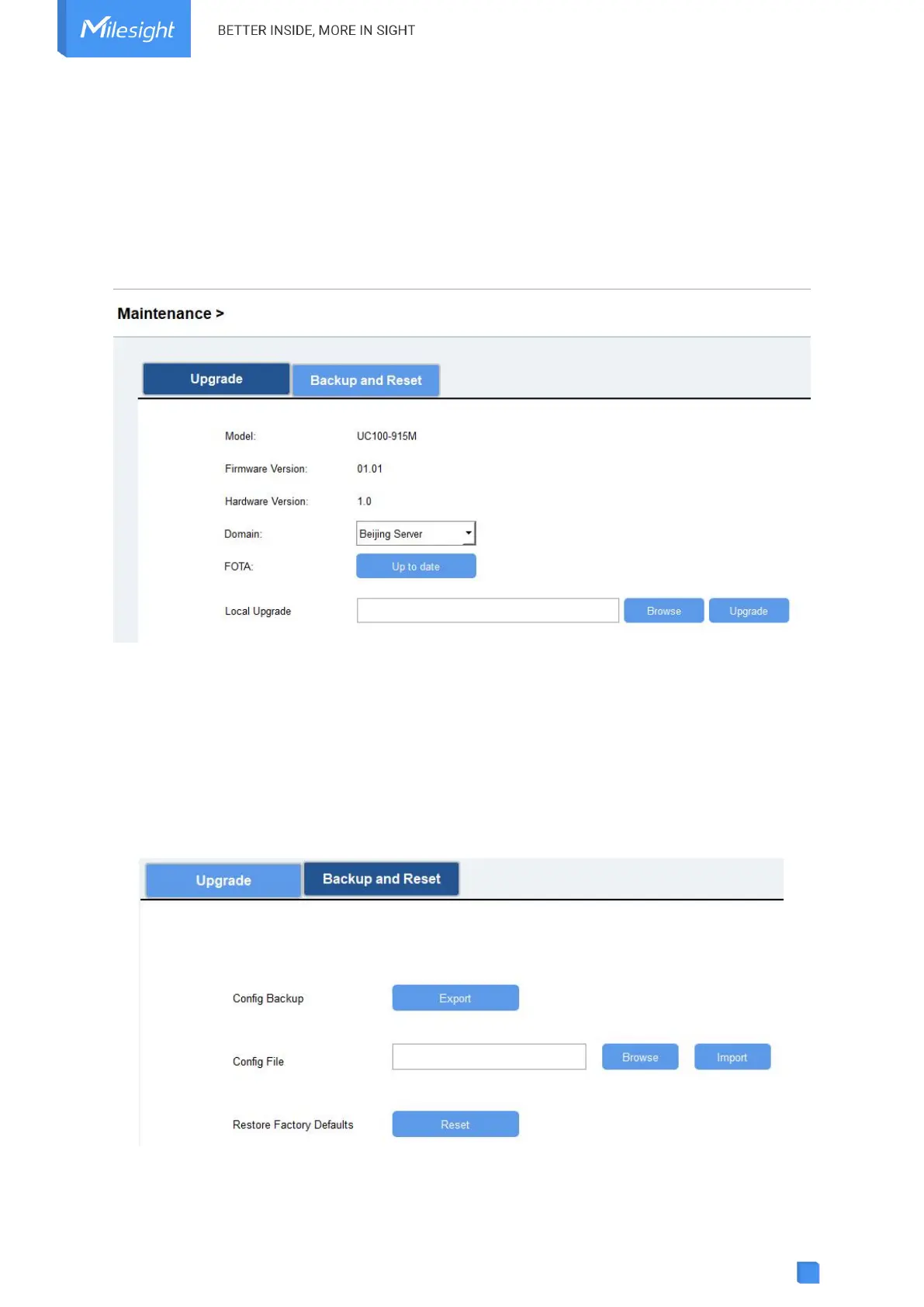 UC100 devices support configuration backup for easy and quick device configuration in bulk.