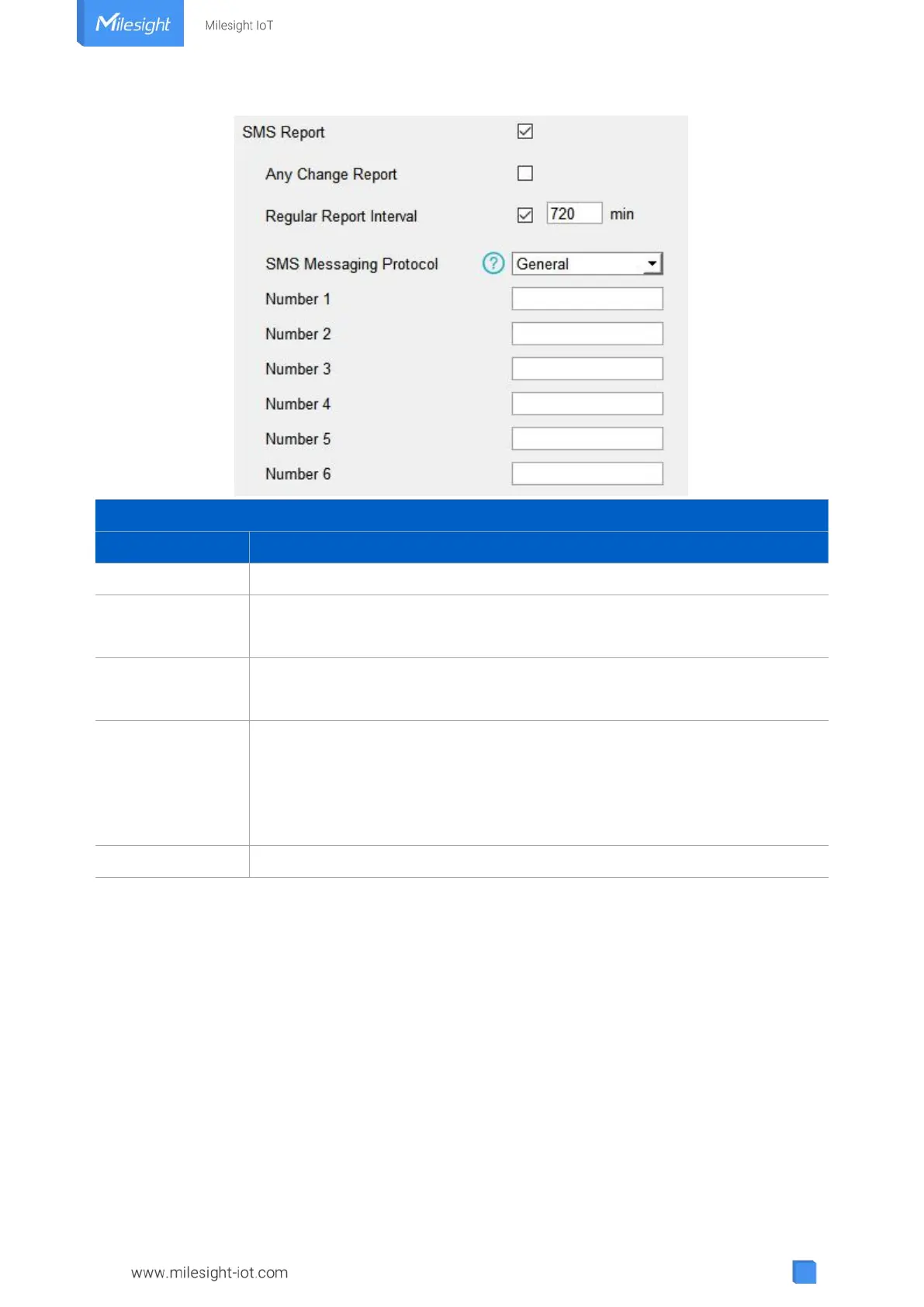 Reports SMS to these phone numbers. 6 numbers can be added at most.