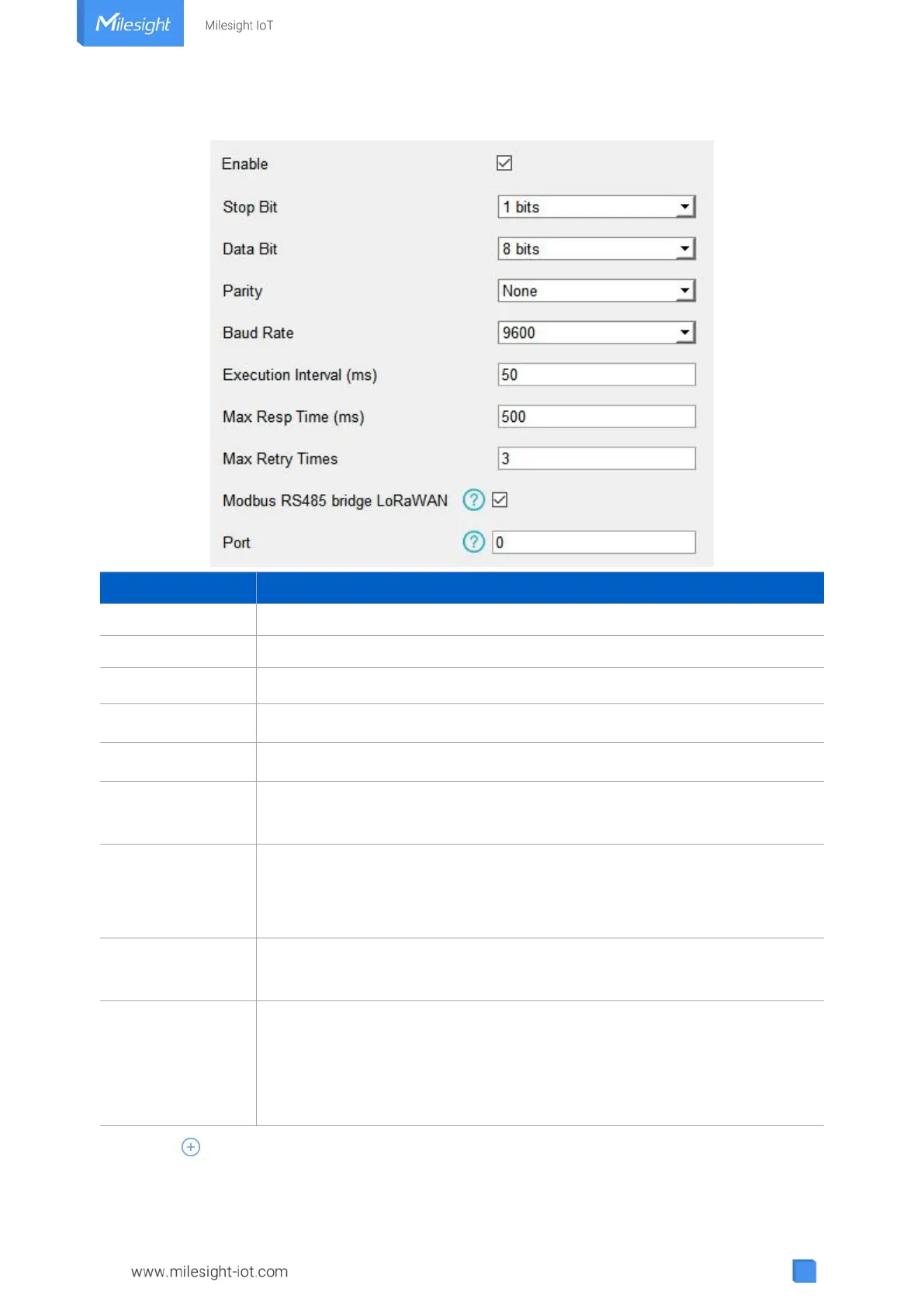 If this mode is enabled, the device will transmit Modbus RTU commands