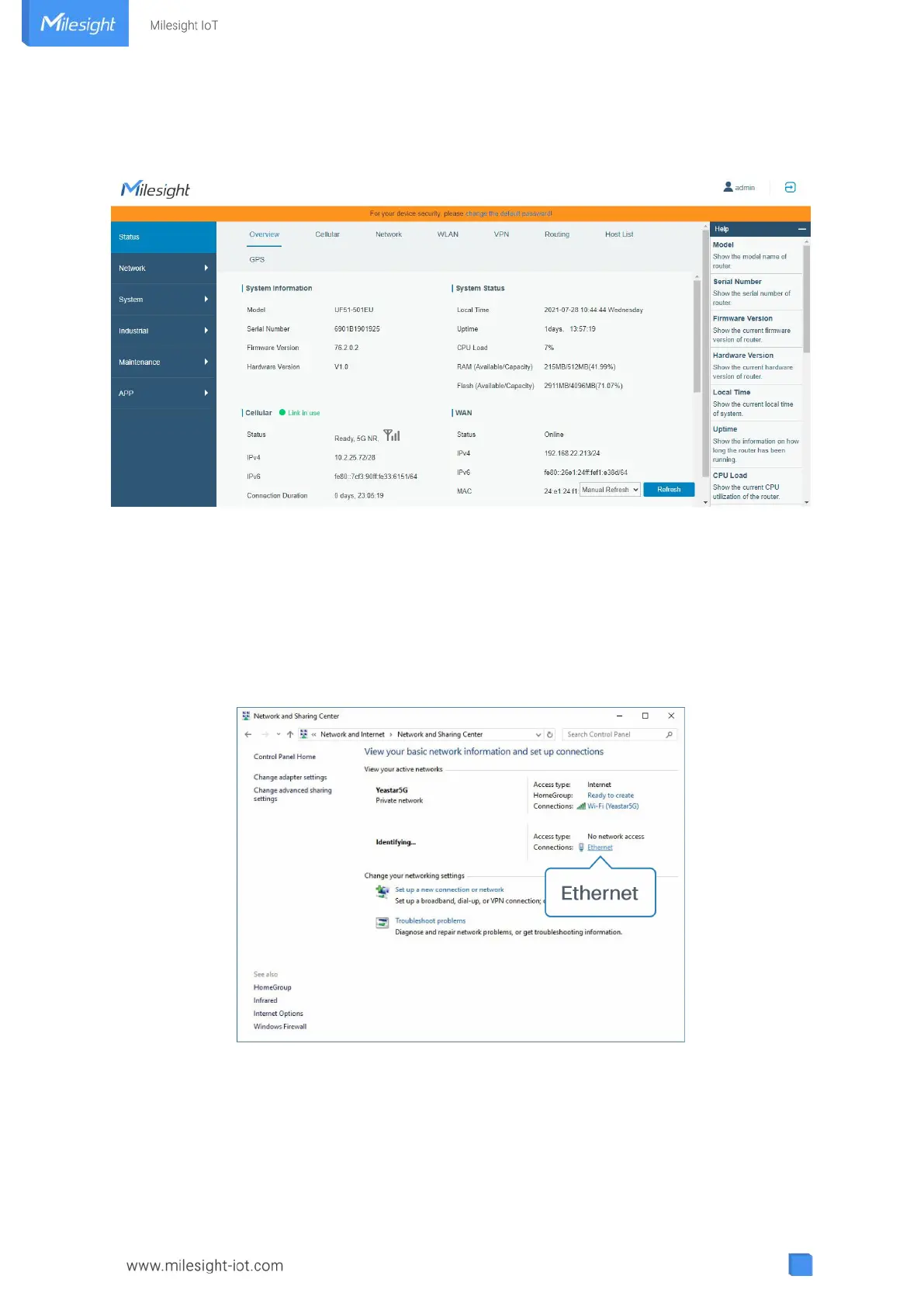 A. Go to “Control Panel” “Network and Internet” “Network and Sharing Center”, then click “Ethernet
