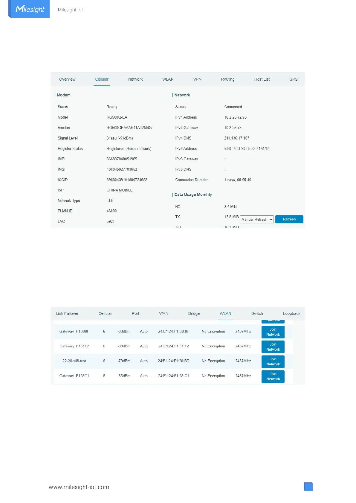B. Click “Scan” to search for Wi-Fi access point. Select the available one and click “Join Network”.