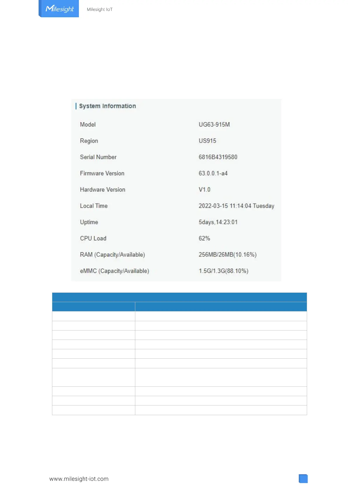 You can view the system information of the gateway on this page.