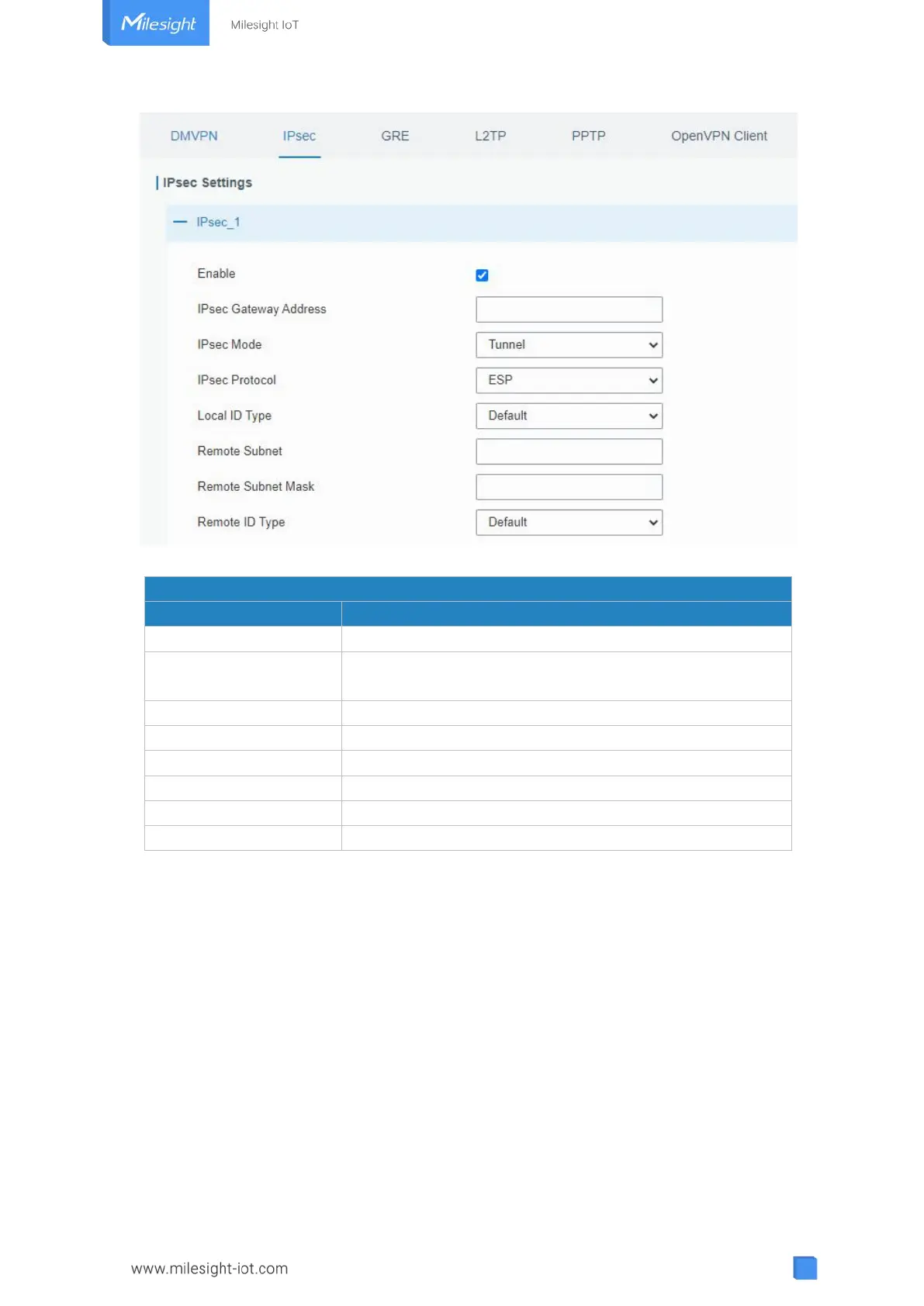 Enable IPsec tunnel. A maximum of 3 tunnels is allowed.