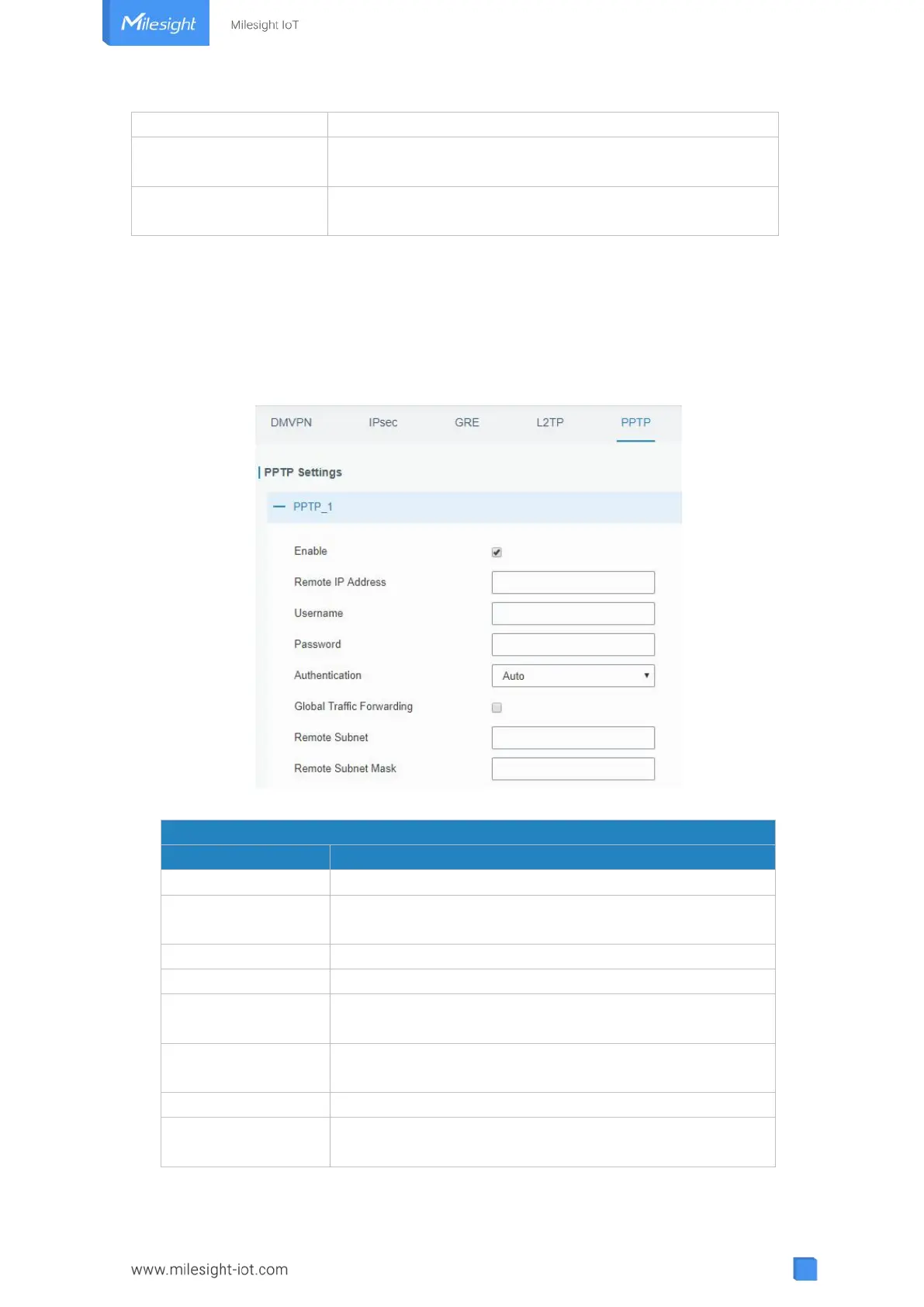 Enable PPTP client. A maximum of 3 tunnels is allowed.