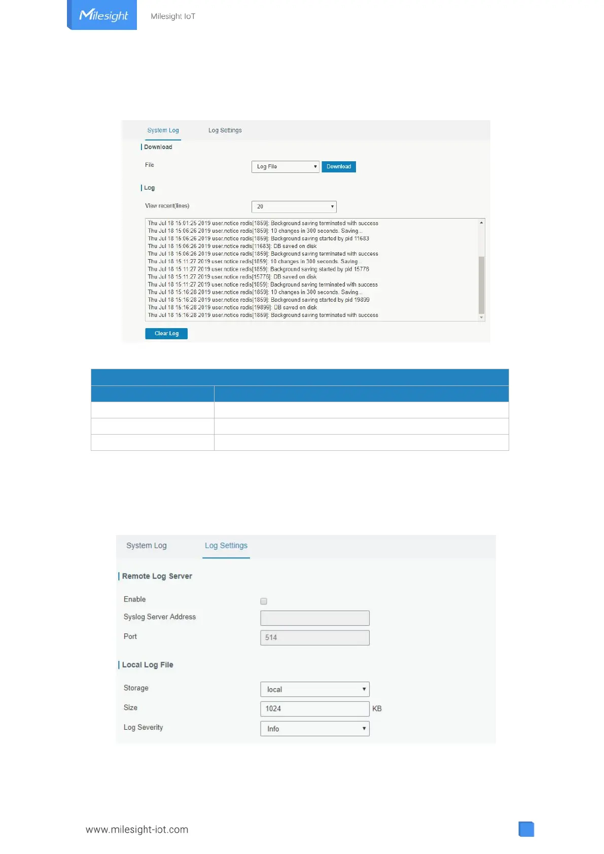 Milesight UG63 - 3.5.3 Log