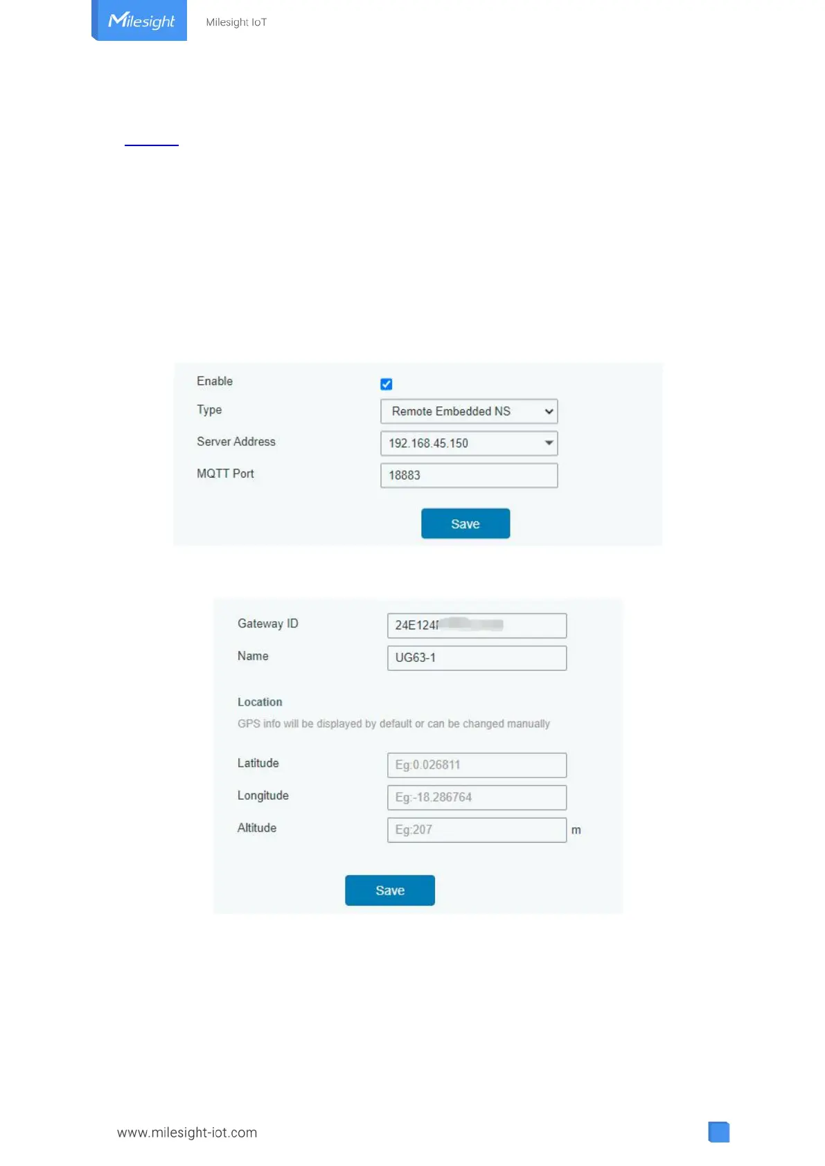 1. Go to “Packet Forwarder” → “General” page to enable the “Remote Embedded NS” and