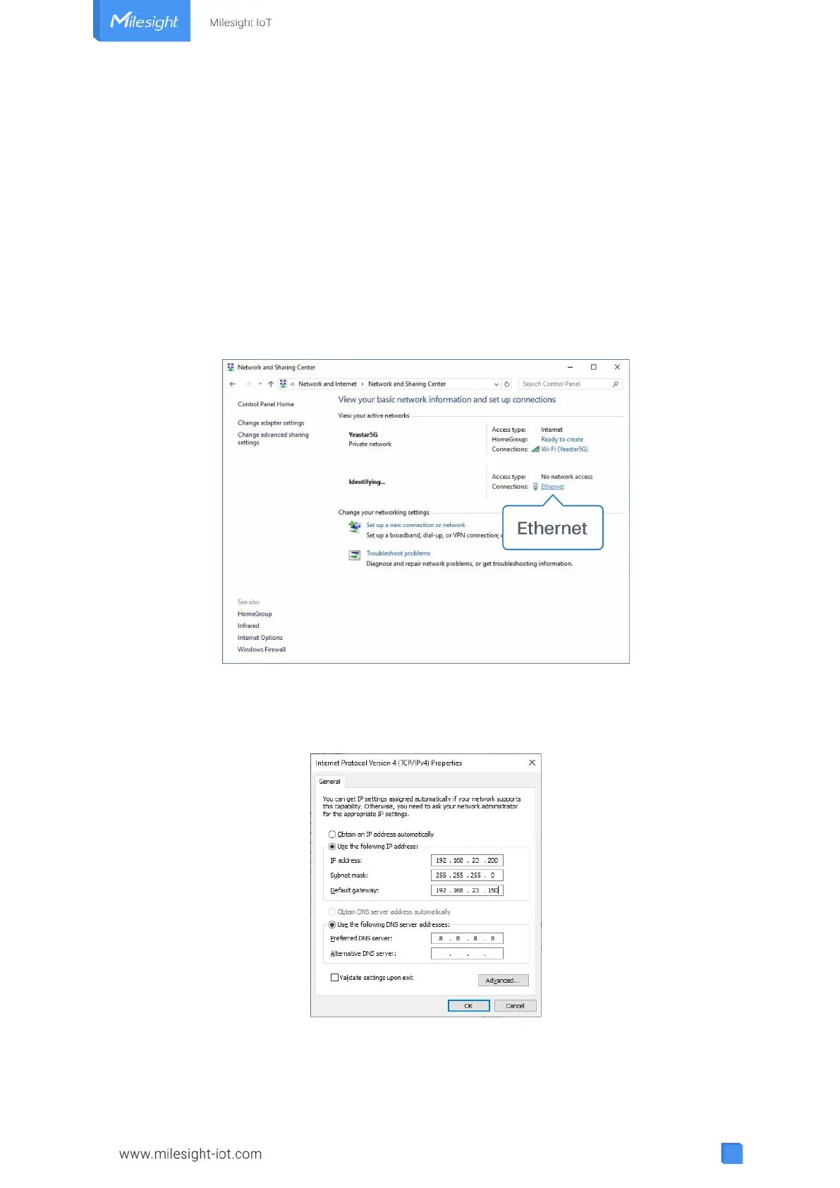 1. Go to “Control Panel” → “Network and Internet” → “Network and Sharing Center”, then