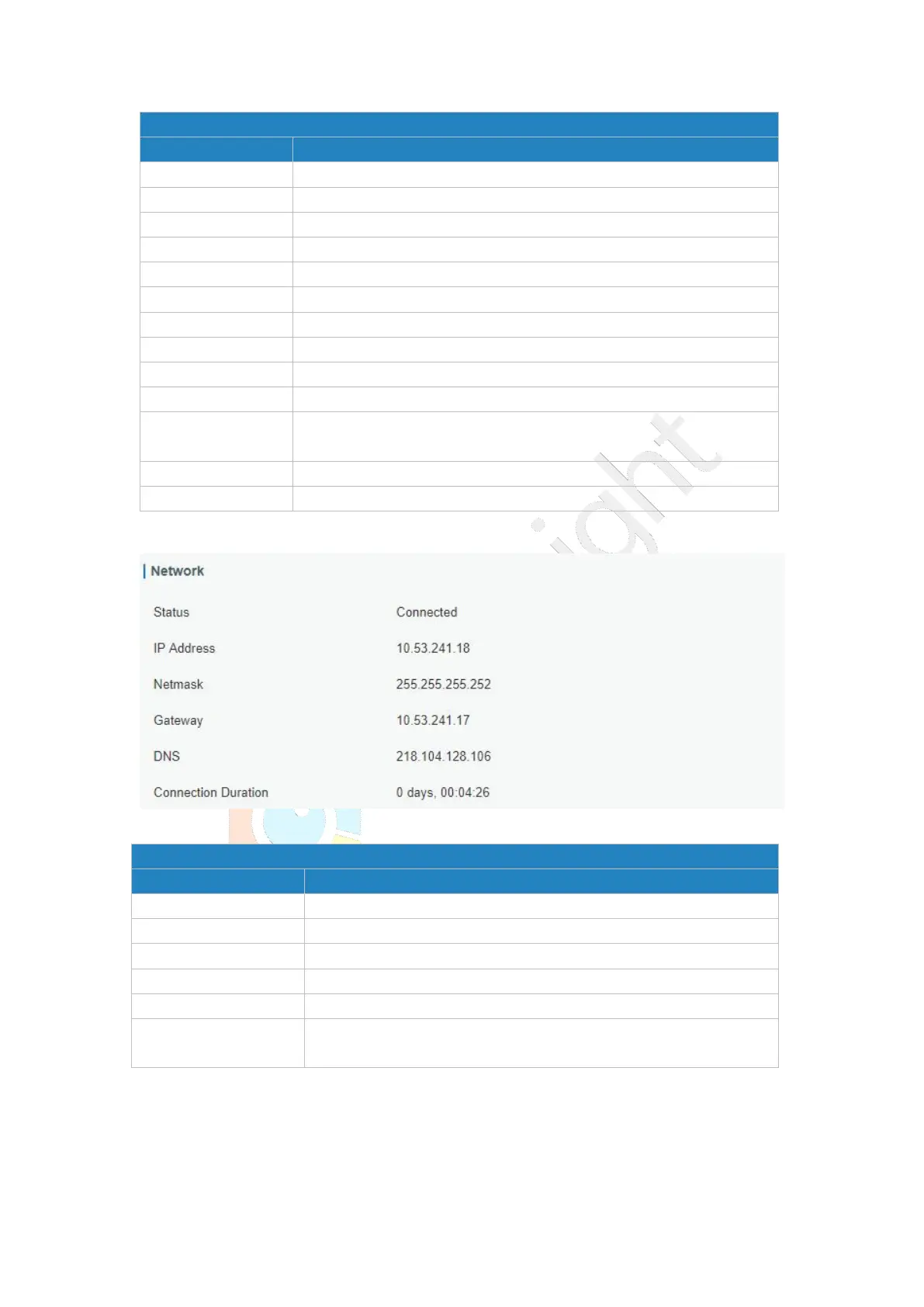 Network Type Show the connected network type, such as LTE, 3G, etc.