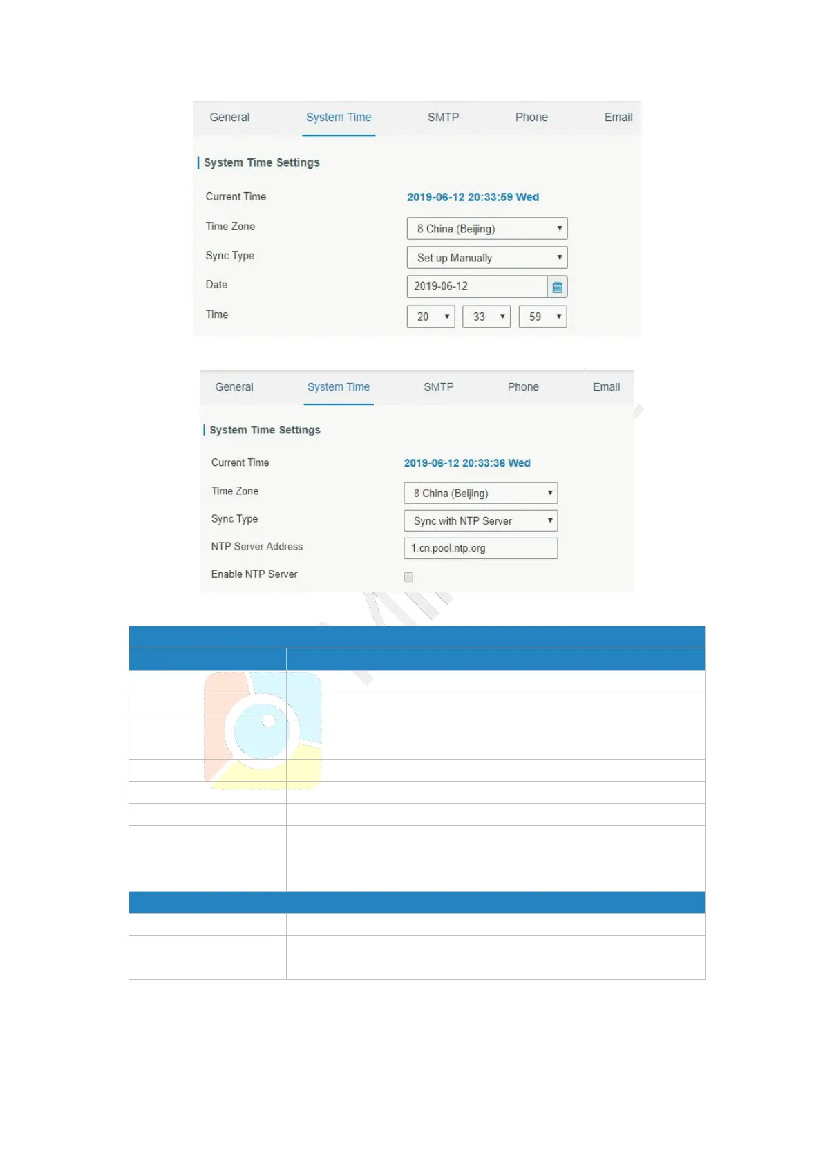 Table 3-4-1-2 System Time Parameters