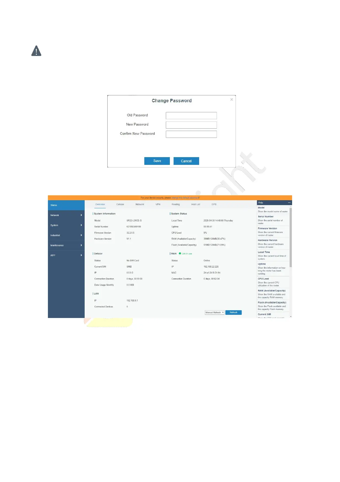 C. When you log in with the default username and password, you will be asked to modify the password.