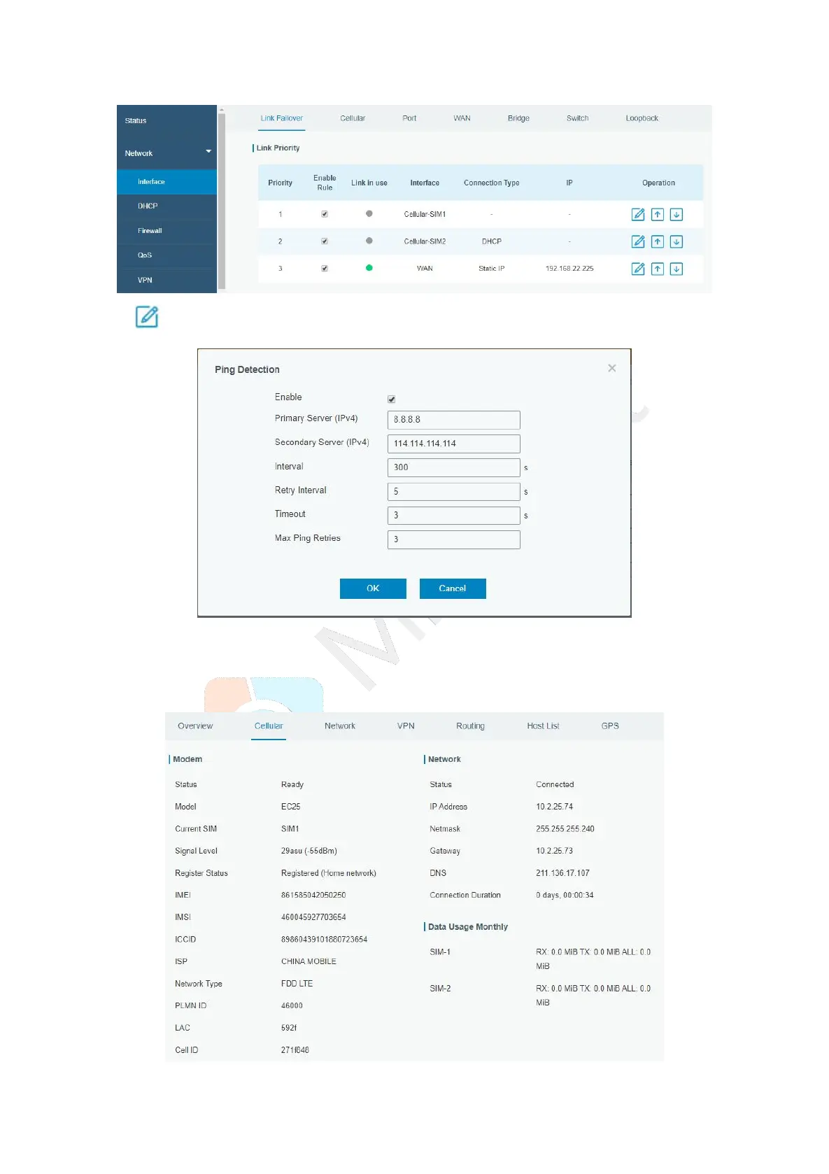 E. Click “Status > Cellular” to view the status of the cellular connection. If it shows “Connected”, it