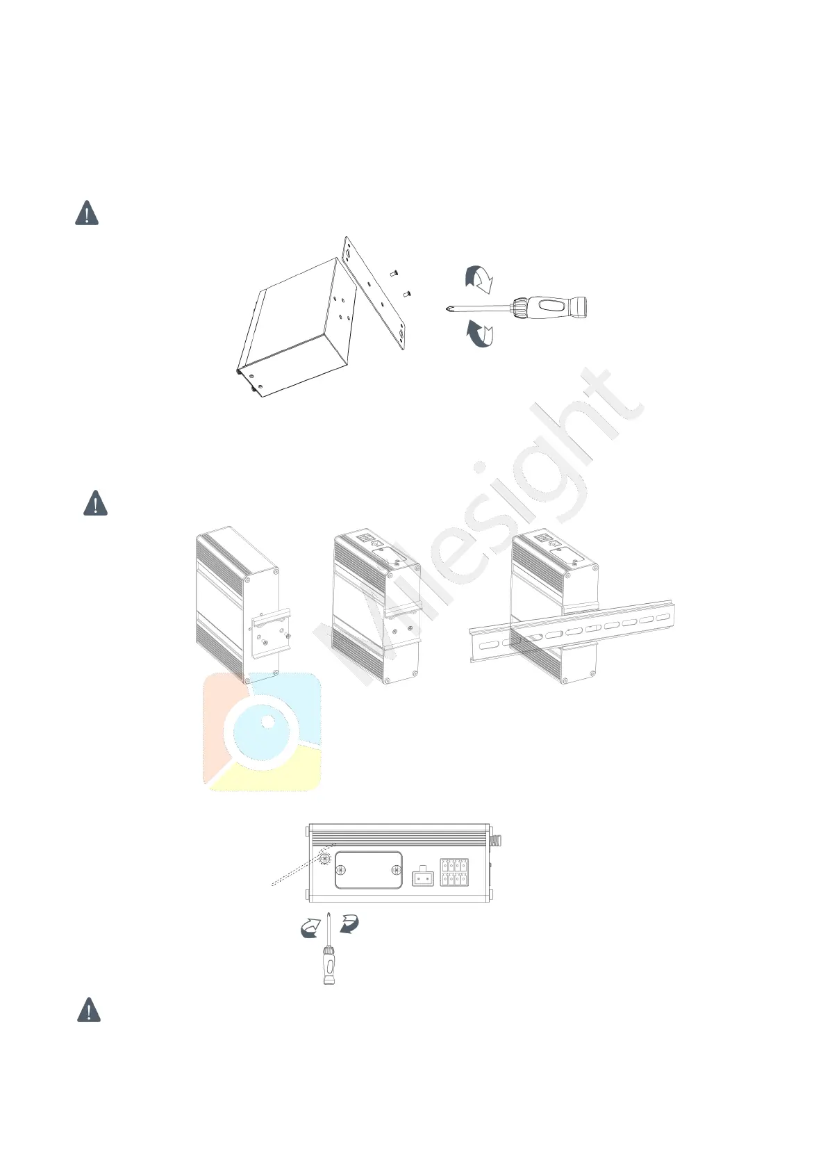 Use 2 pcs of M3 × 6 flat head Phillips screws to fix the DIN rail to the router, and then hang the DIN rail