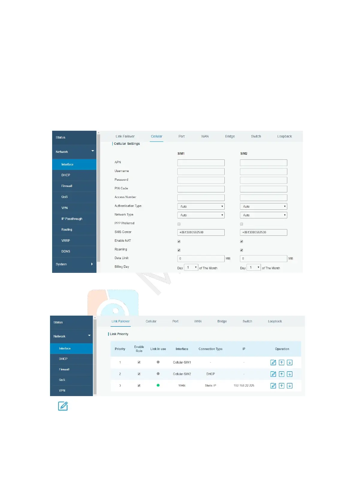 A. Click “Network > Interface > Cellular > Cellular Setting” to configure the cellular info, like APN and