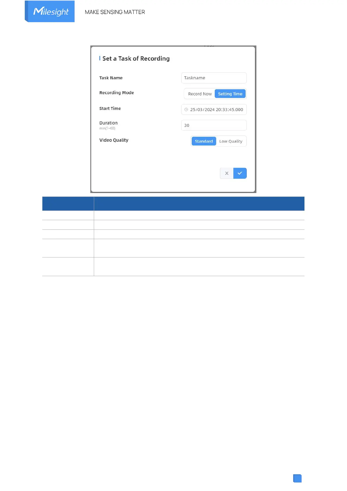 Set the duration of the recording, the duration of all tasks should not be