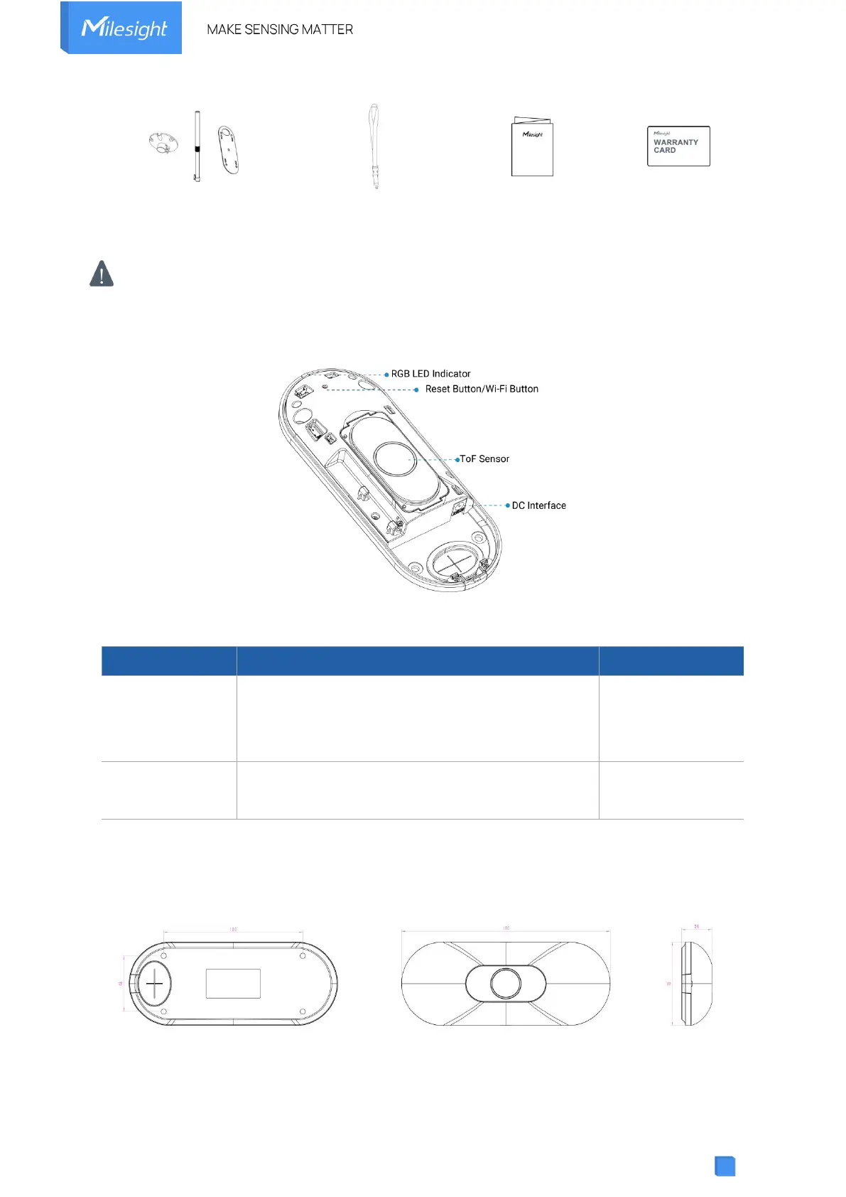 Milesight VS133 - Hardware Overview; Button and LED Indicators; Dimensions (MM)