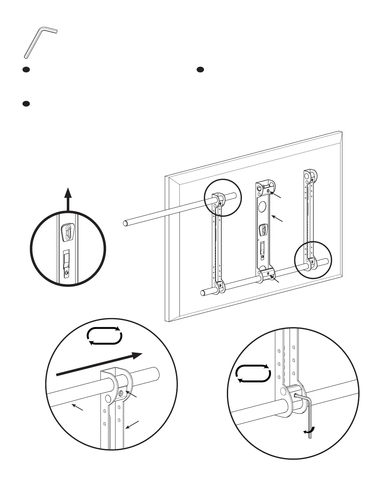Center the cross tubes [04] between the monitor brackets [02] + [03]. Tighten