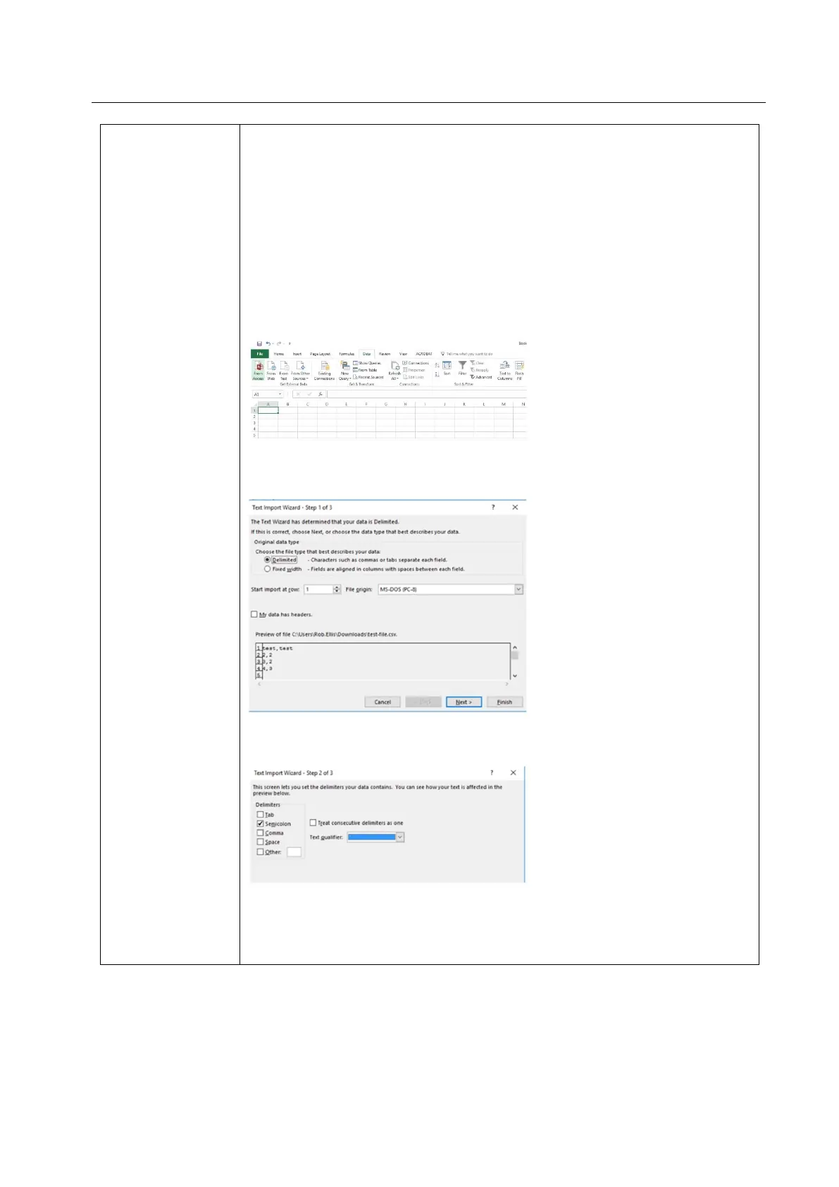 2) Importing a CSV formatted data into Excell