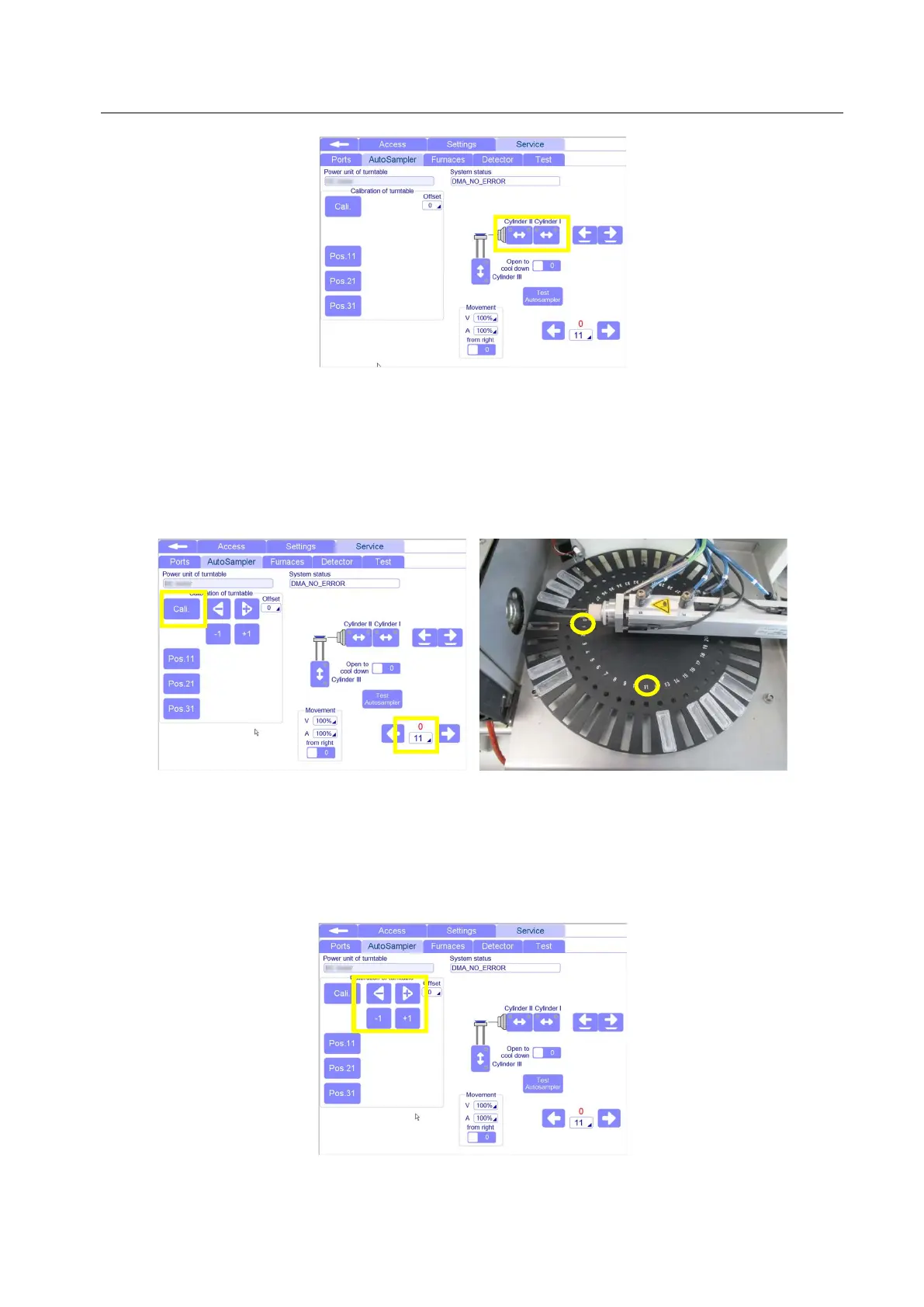 4) Then, press “Cali” button: the autosampler plate starts to rotate and it stops when the hypothetic
