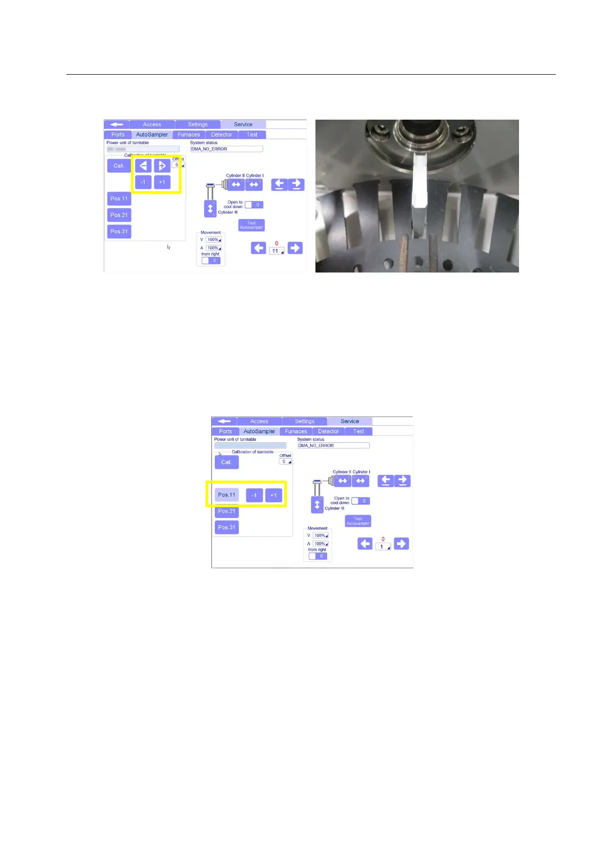 8) Press “Pos.11” icon: the autosampler plate should rotate in order to place the position 11 directly
