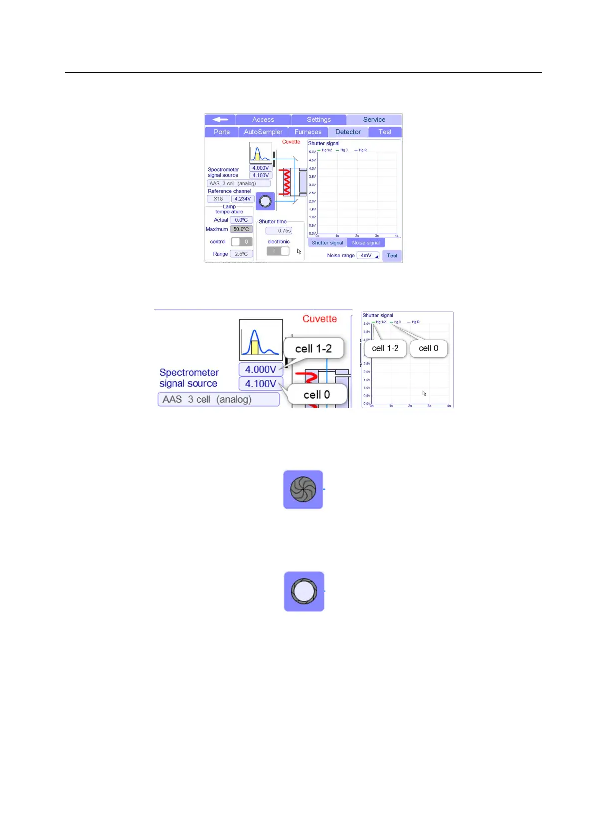 In this page the Administrator can check the detectors signals. In according with the spectrophotometer
