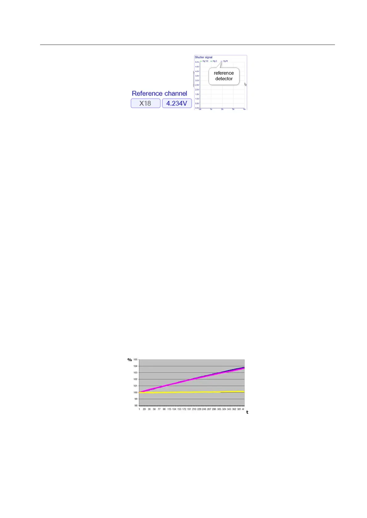- % reference is the % of light on the reference detector (double beam detector). Viole line