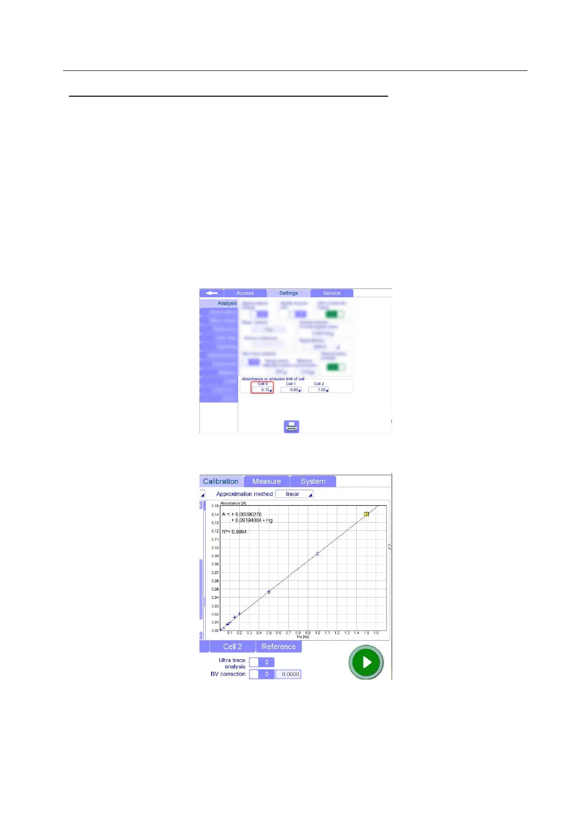 example, the “Absorbance limit of cell 0” was set to 0.1500, as the highest calibration point in cell 0 (1.5