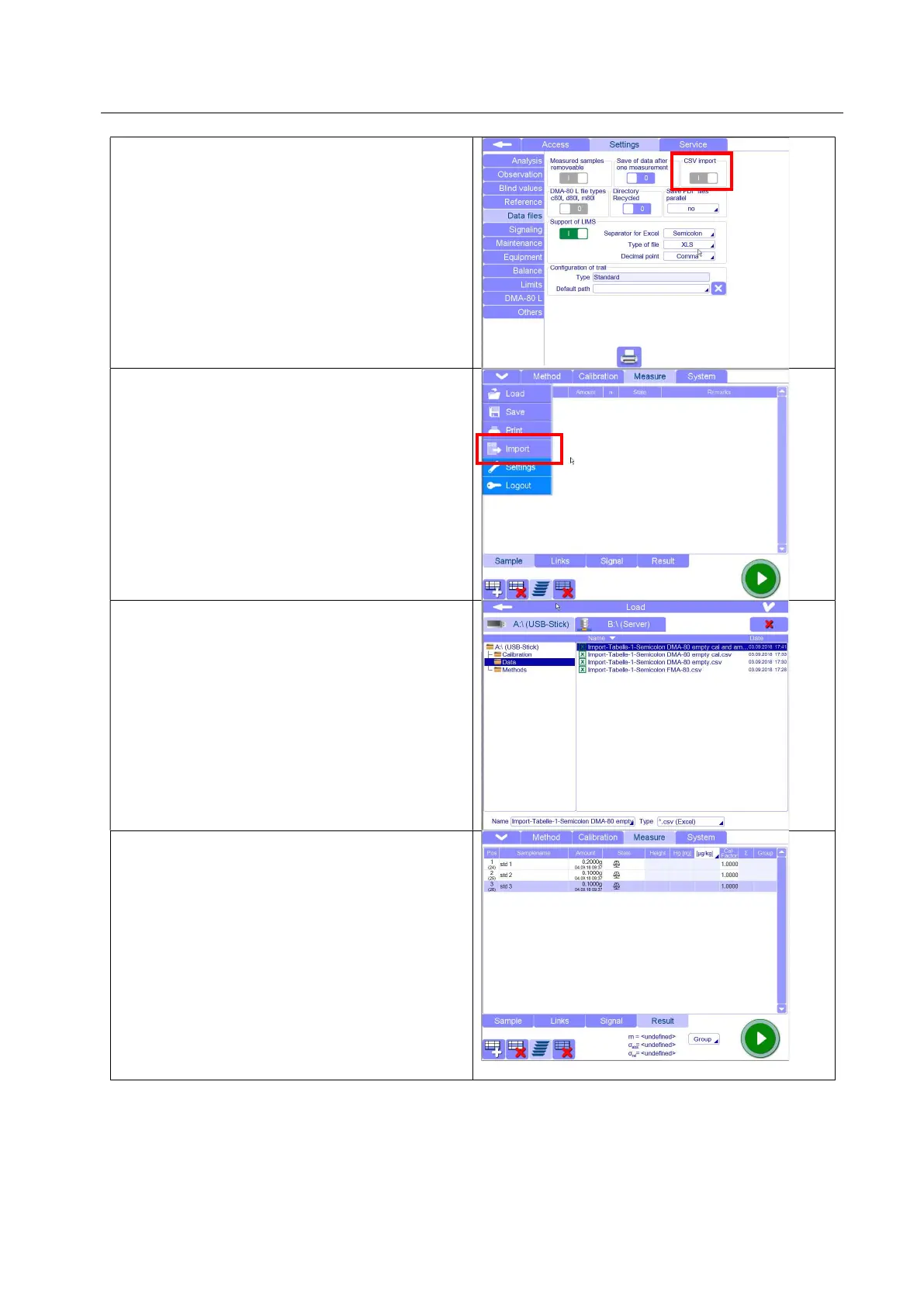 In the software, be sure the function “CSV import”