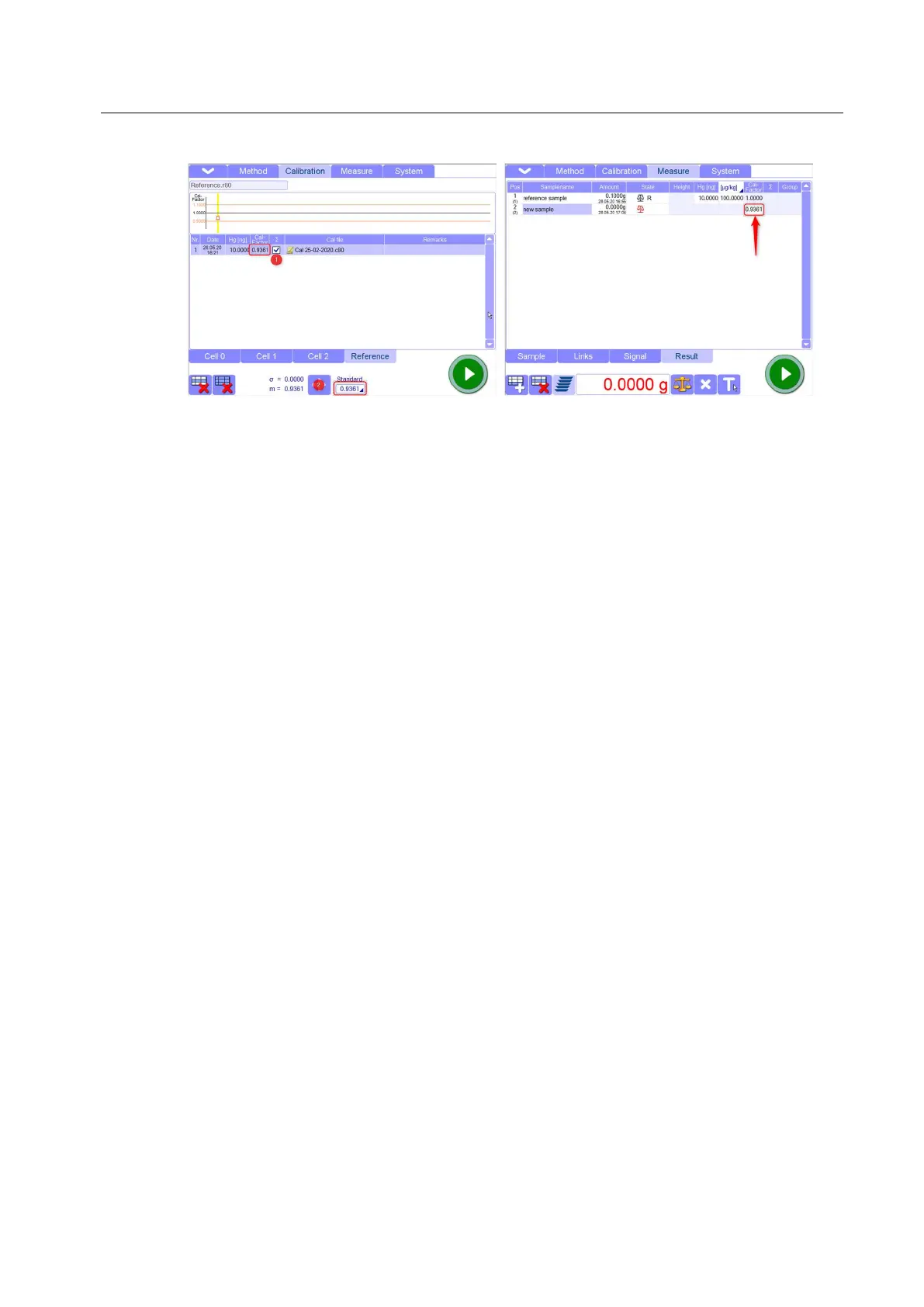 6. The new Cal- factor can be automatically used for measurements once selected.