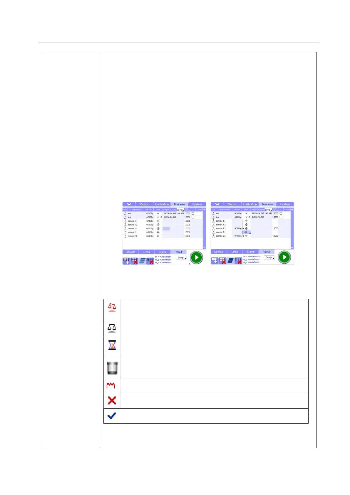 Sample has not been weighed yet or the amount has not been