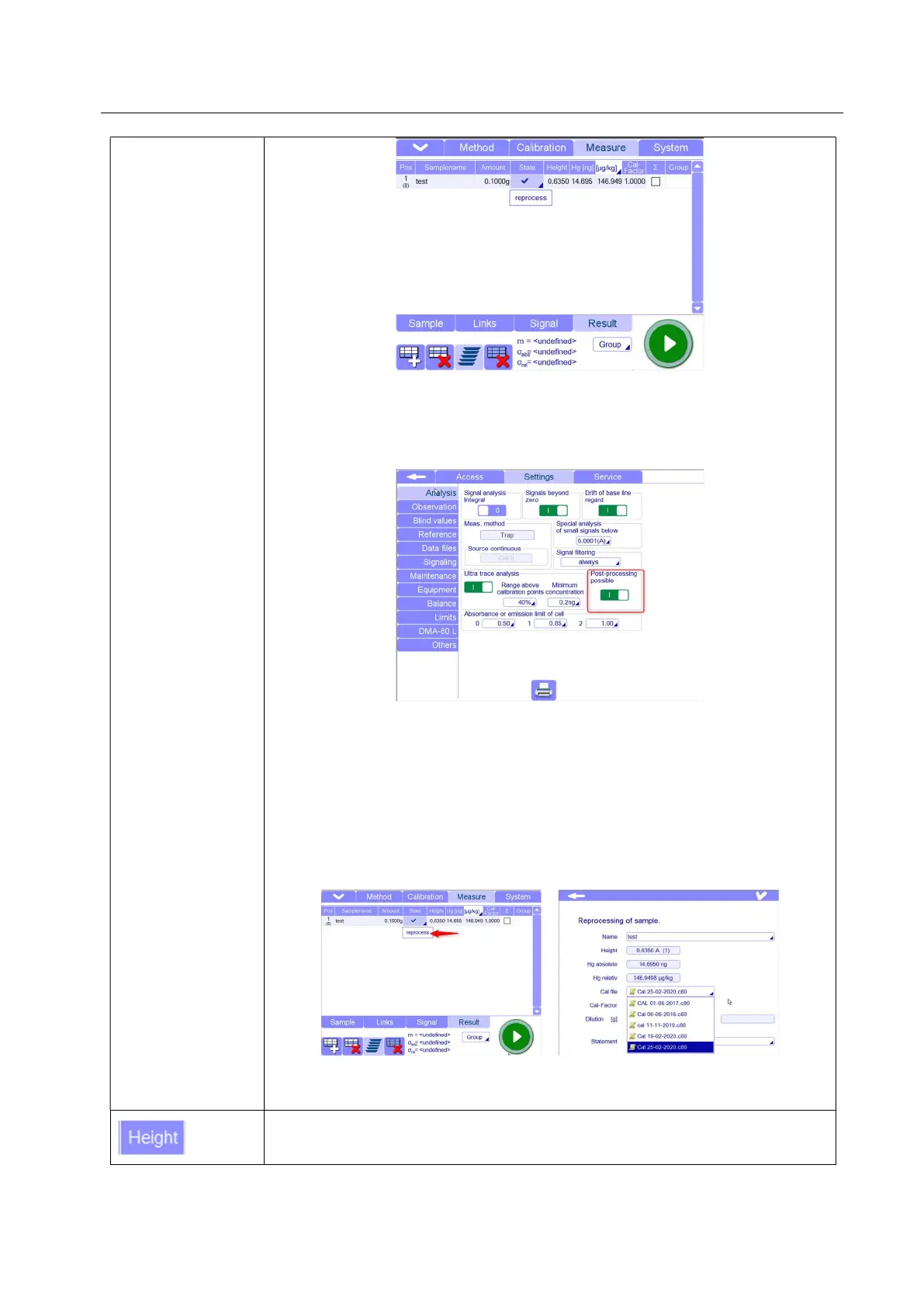 - Reprocess: It is possible to re-process a sample after the analysis using a